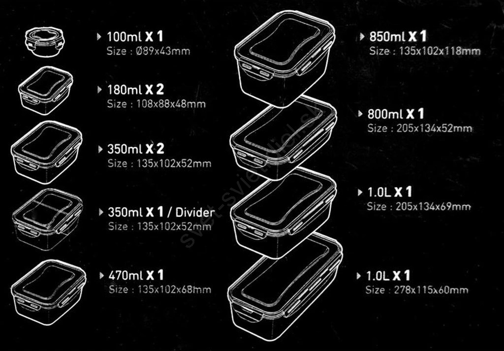 1 x 350 ml s priehradkami - 13,5 × 10,2 × 5,2 cm;