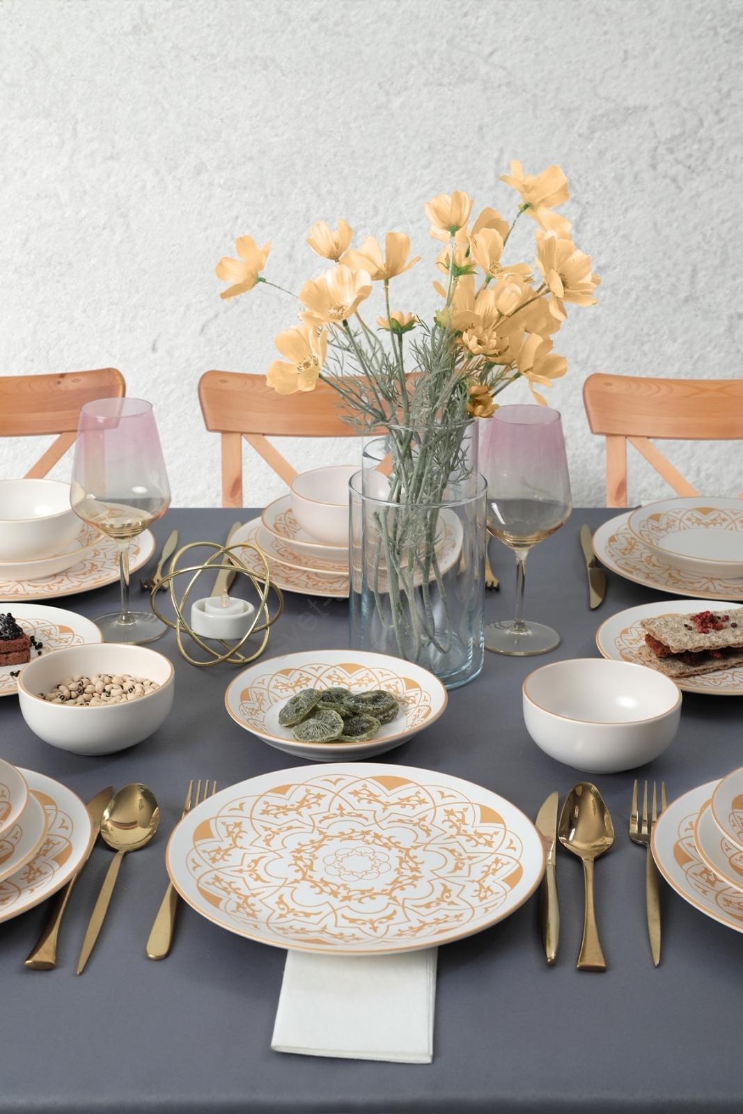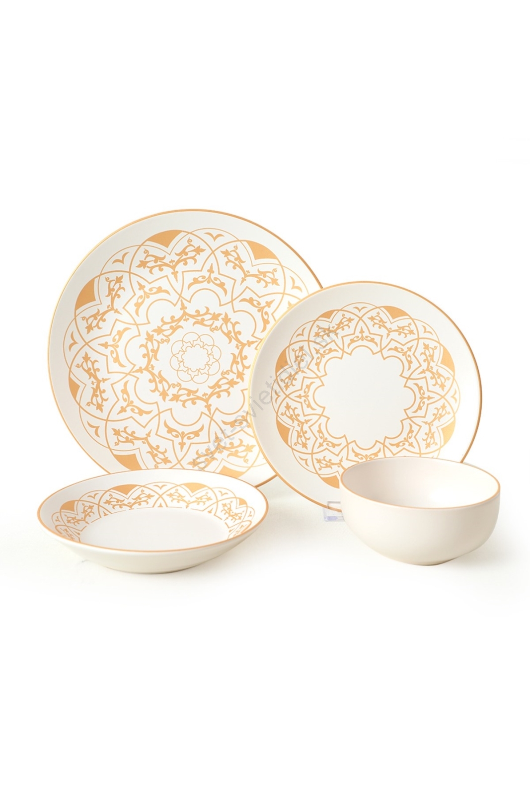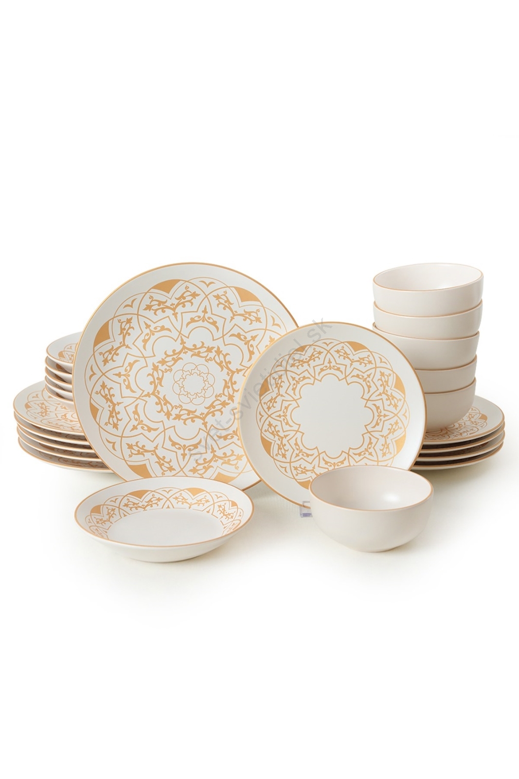 24-dielna jedálenská súprava, biela/zlatá, keramika