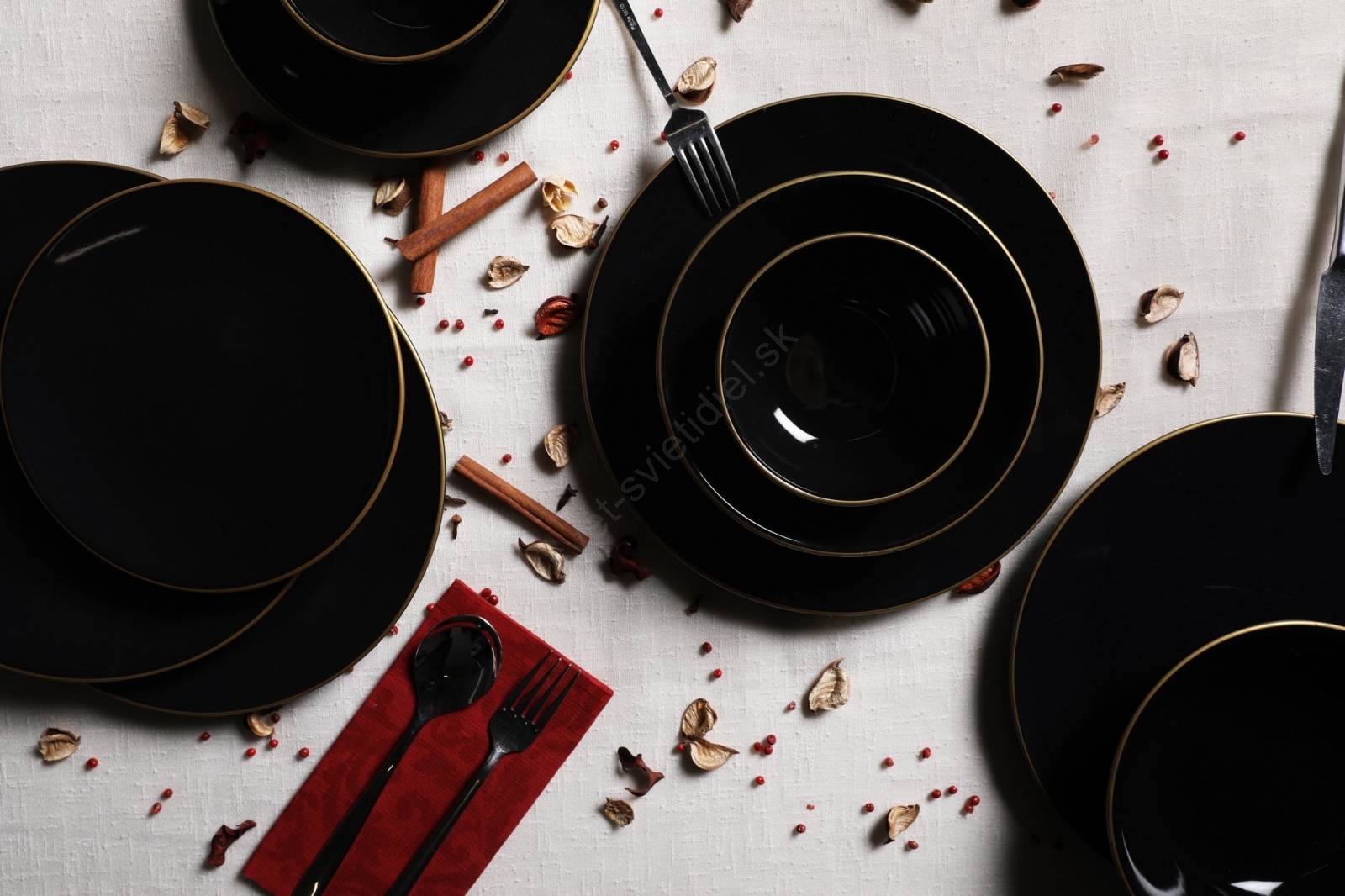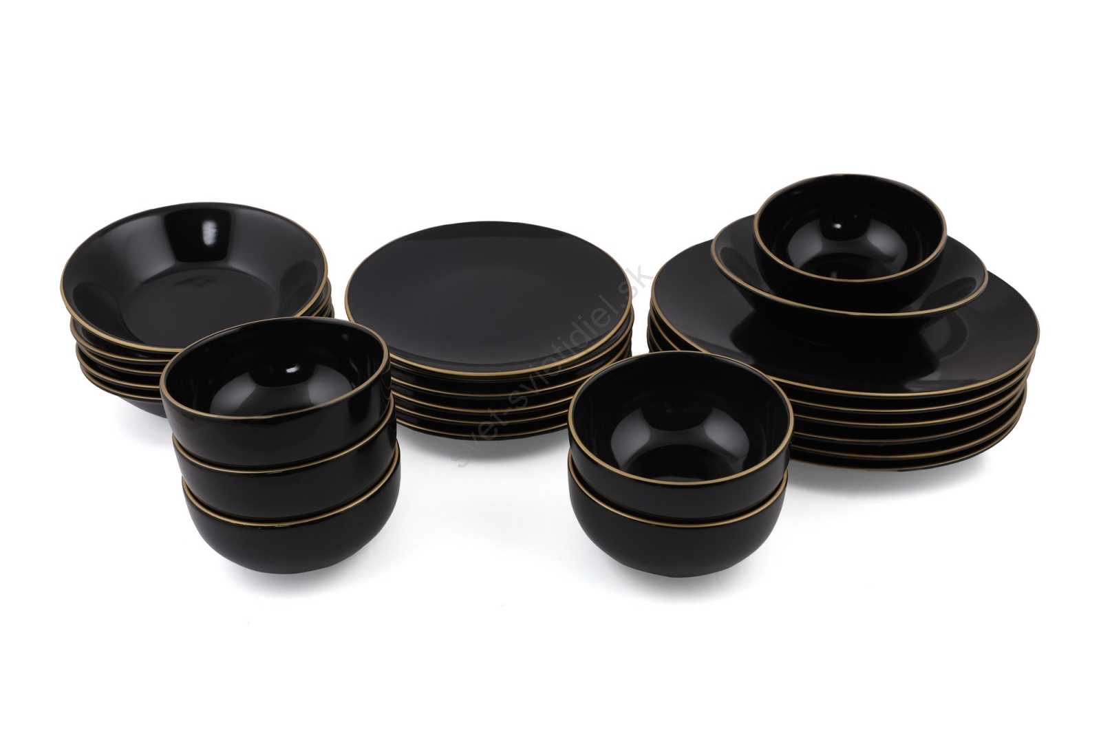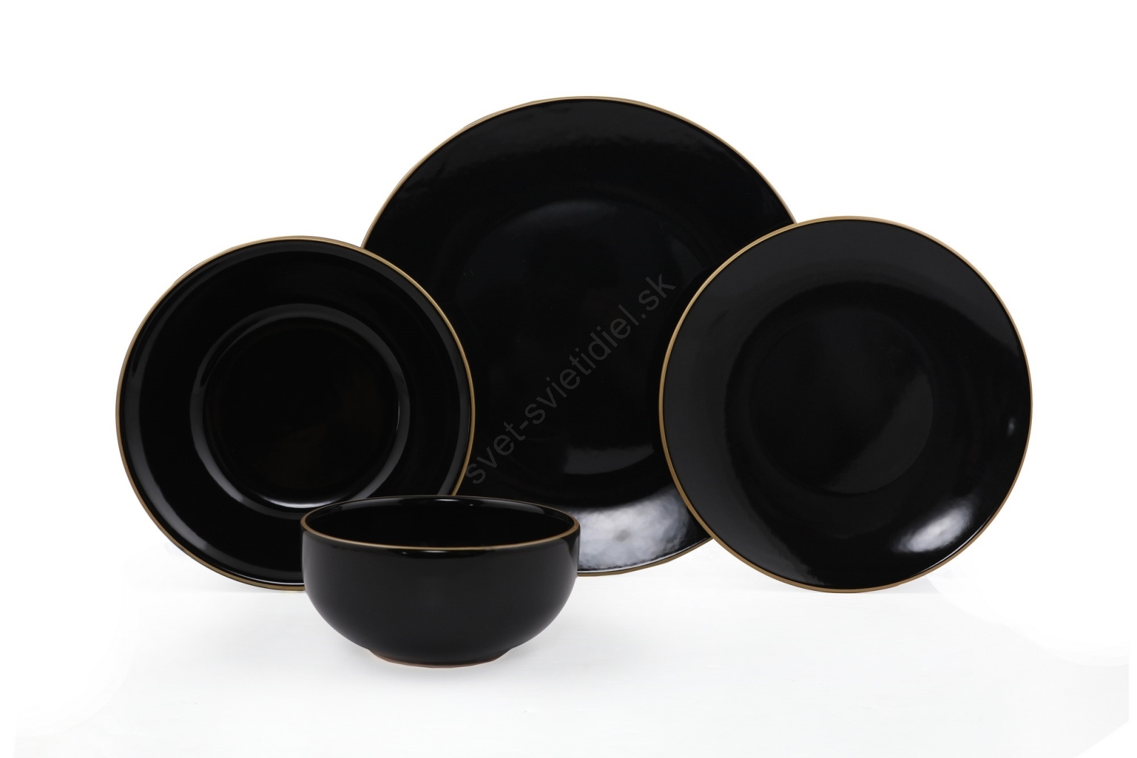 24-dielna jedálenská súprava, čierna/zlatá, kamenina