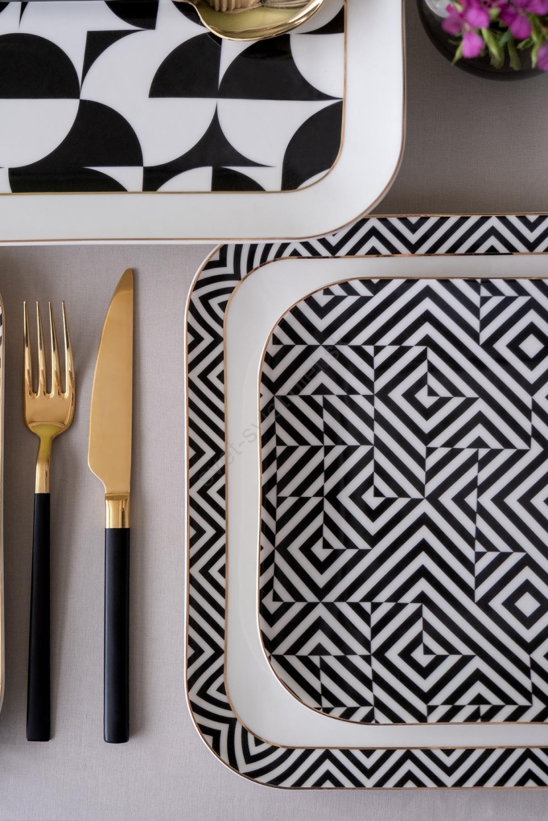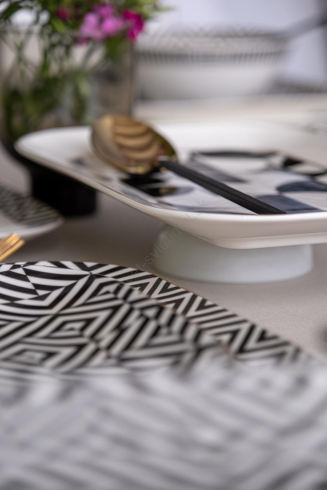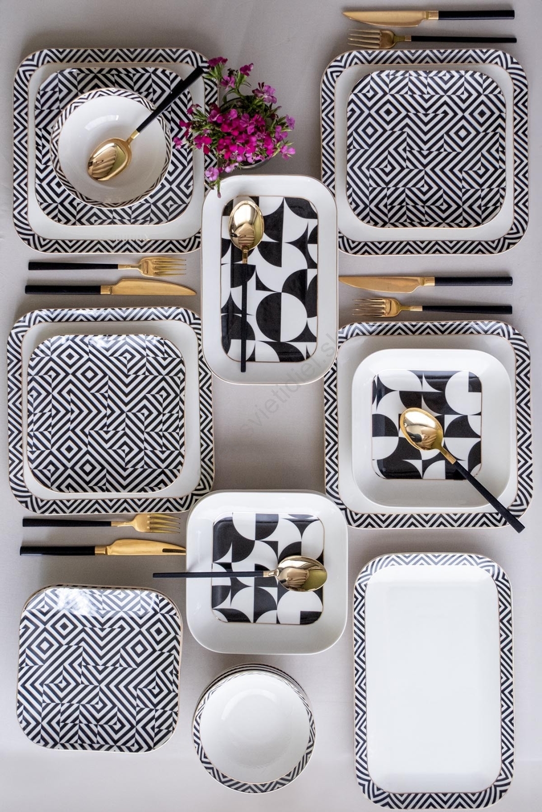 26-dielna jedálenská súprava z kvalitného porcelánu – biela/čierna