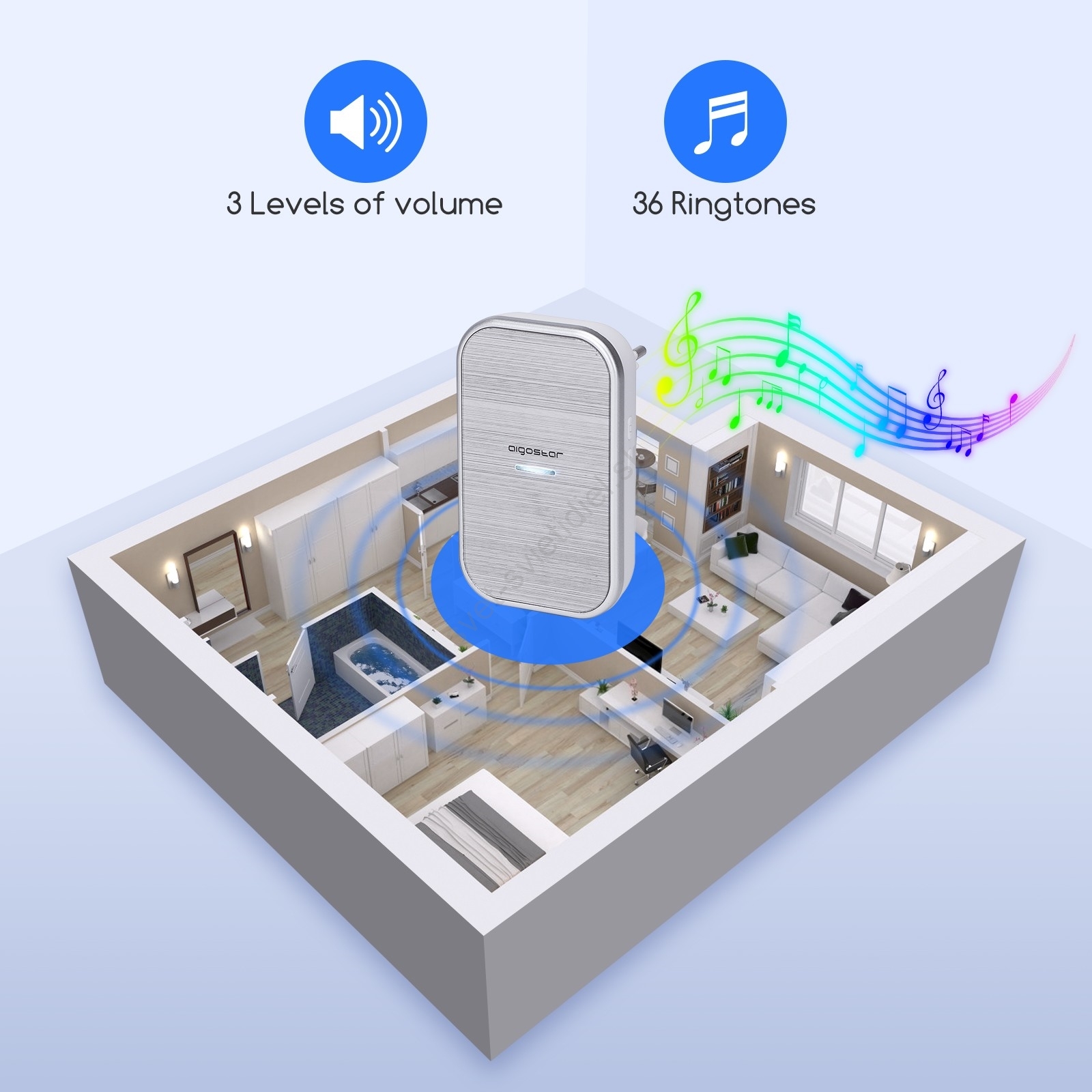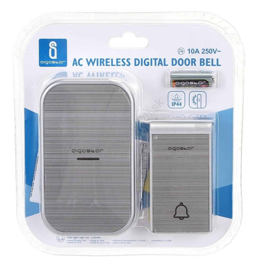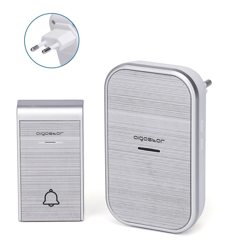 Aigostar - Bezdrôtový zvonček do zásuvky 230V/12V IP44 strieborný