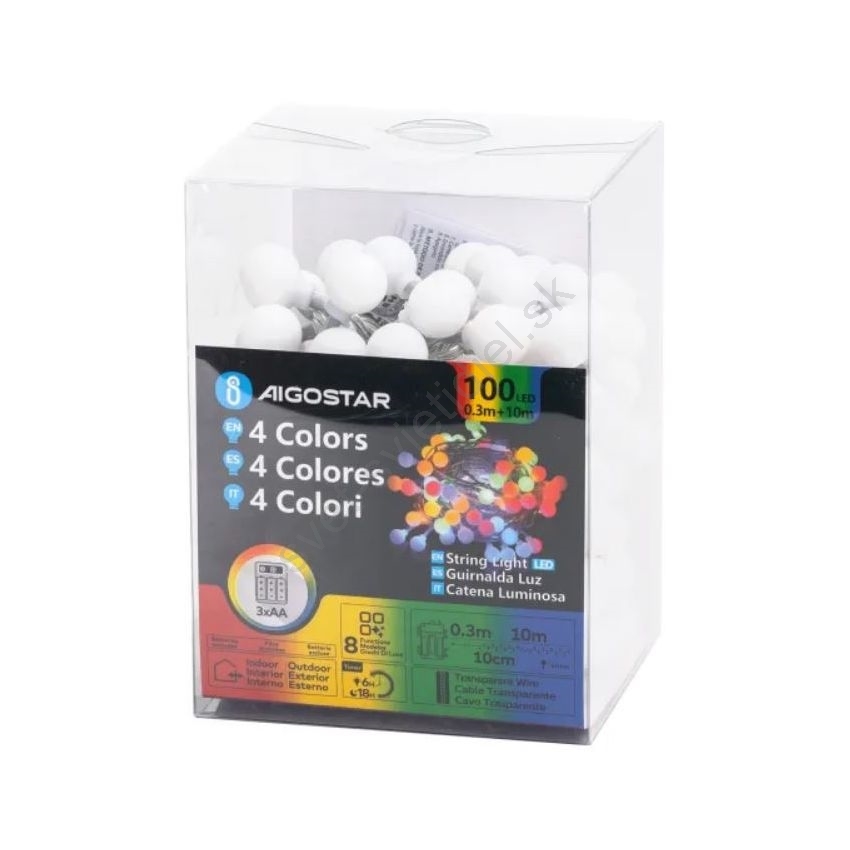 Aigostar - LED vonkajší svetelný reťazec 100xLED/3xAA/8 režimov 10,3 m IP44 multifarebný