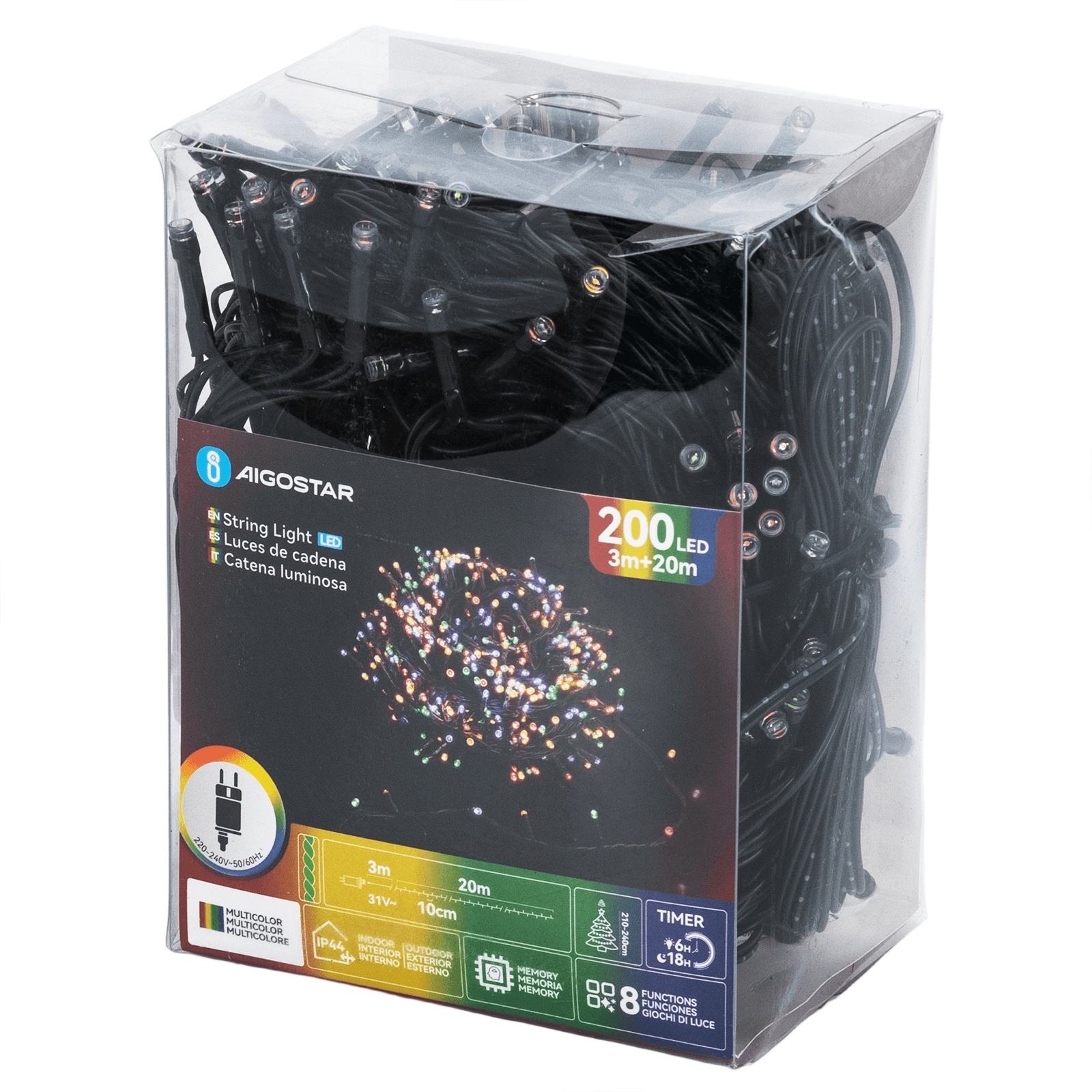 • Aigostar - LED vonkajšia vianočná reťaz 200xLED/8 funkcií 23 m IP44 viacfarebná