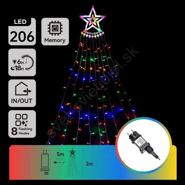 Aigostar - Vonkajšia vianočná LED dekorácia, 206 LED, 2 m, IP44, viacfarebná