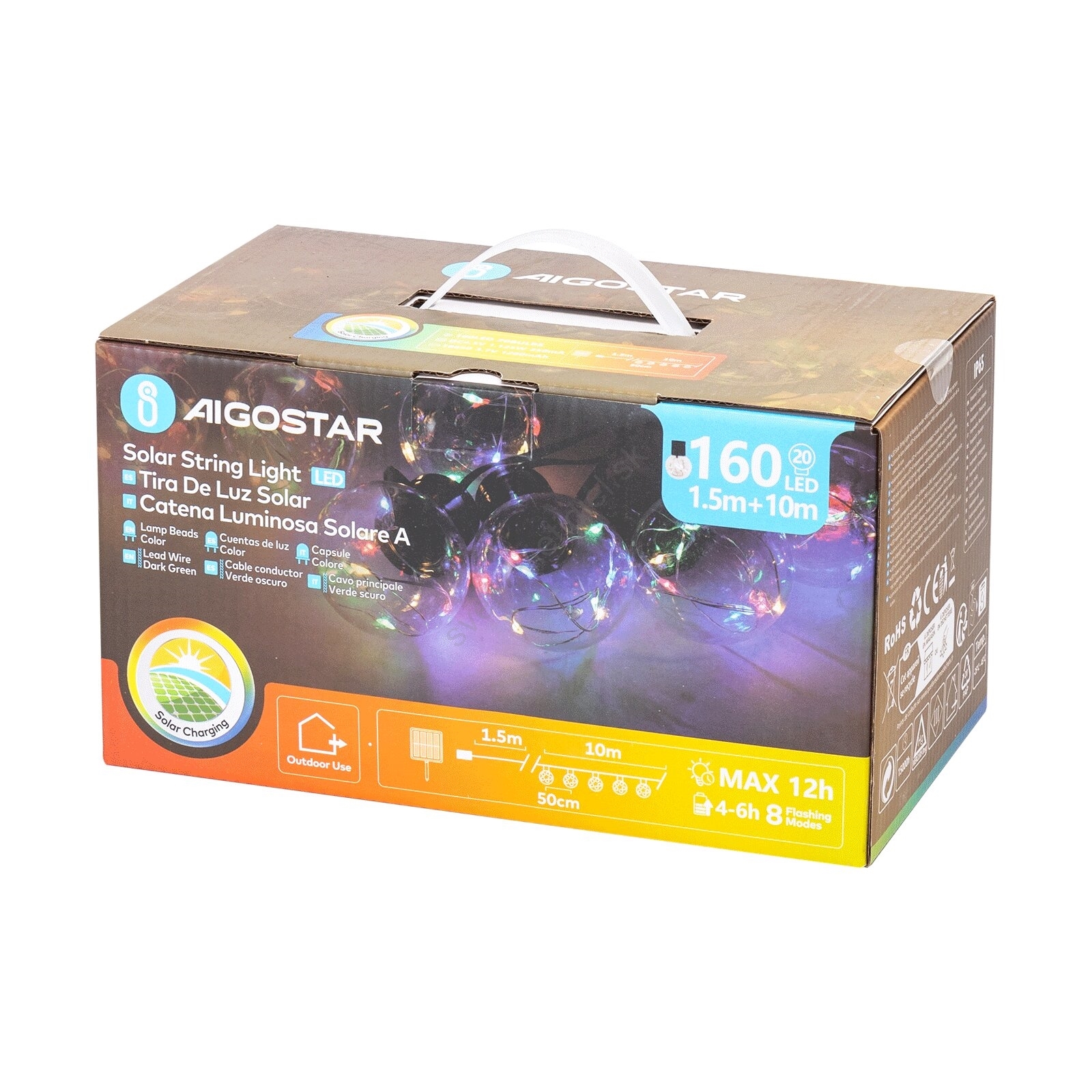 Aigostar - LED Solárna vianočná reťaz 20xLED/8 funkcií 11,5m IP65 multicolor