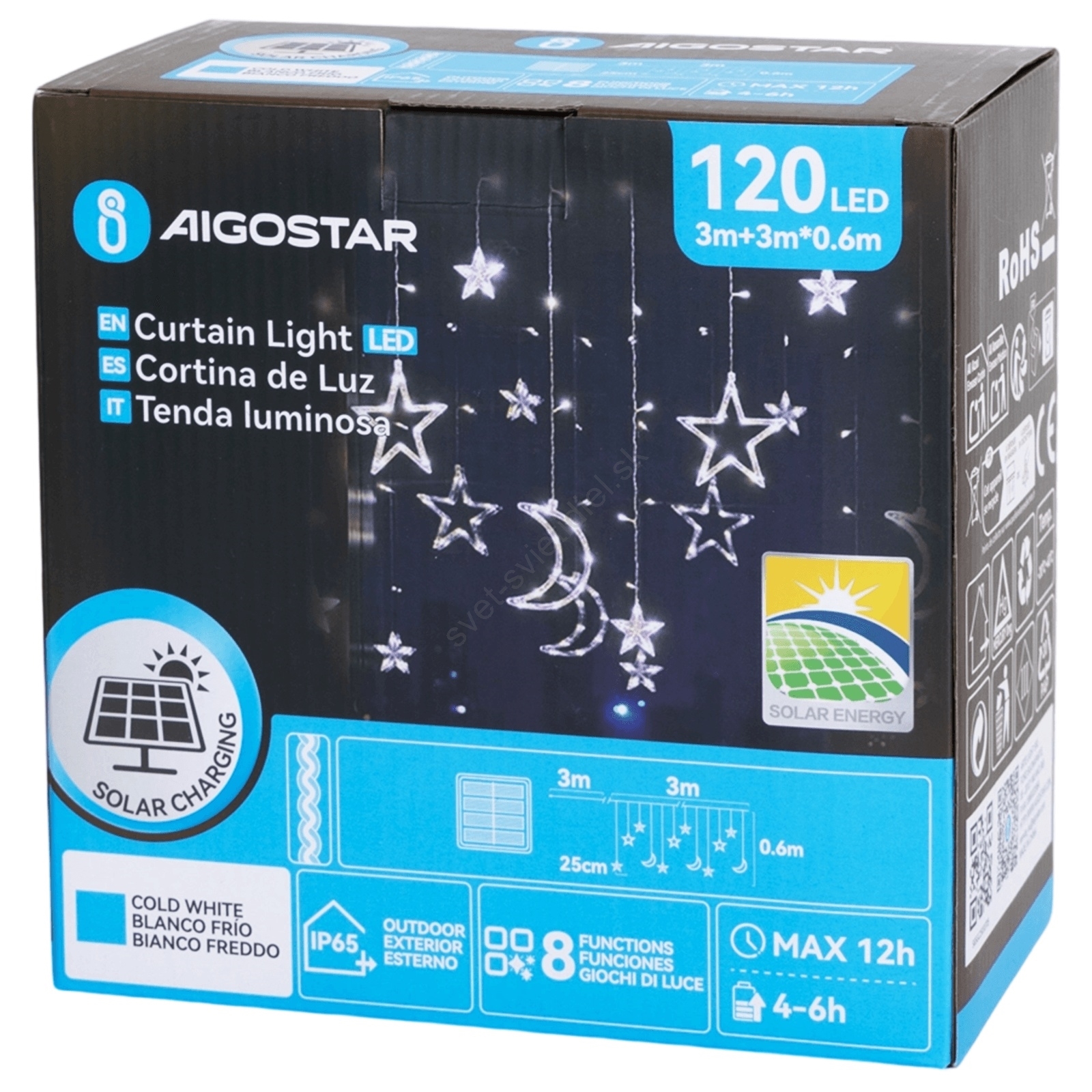 Aigostar - LED solárny vianočný reťaz 120xLED/8 režimov 3x0,6m 500 mAh IP65 studená biela