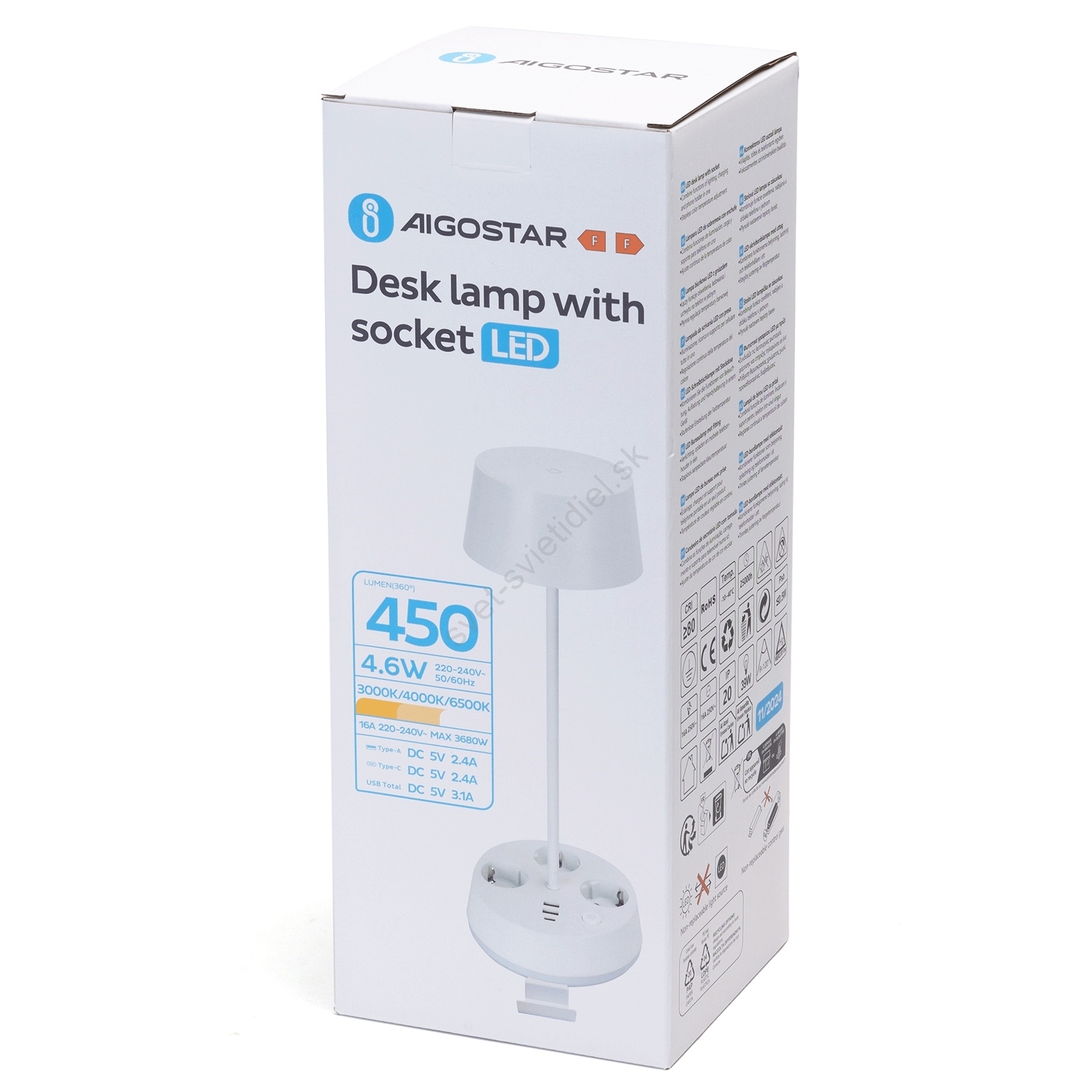 Aigostar - LED stmievateľná stolová lampa so zásuvkami a USB LED/4,6W/230V 3000/4000/6500K biela