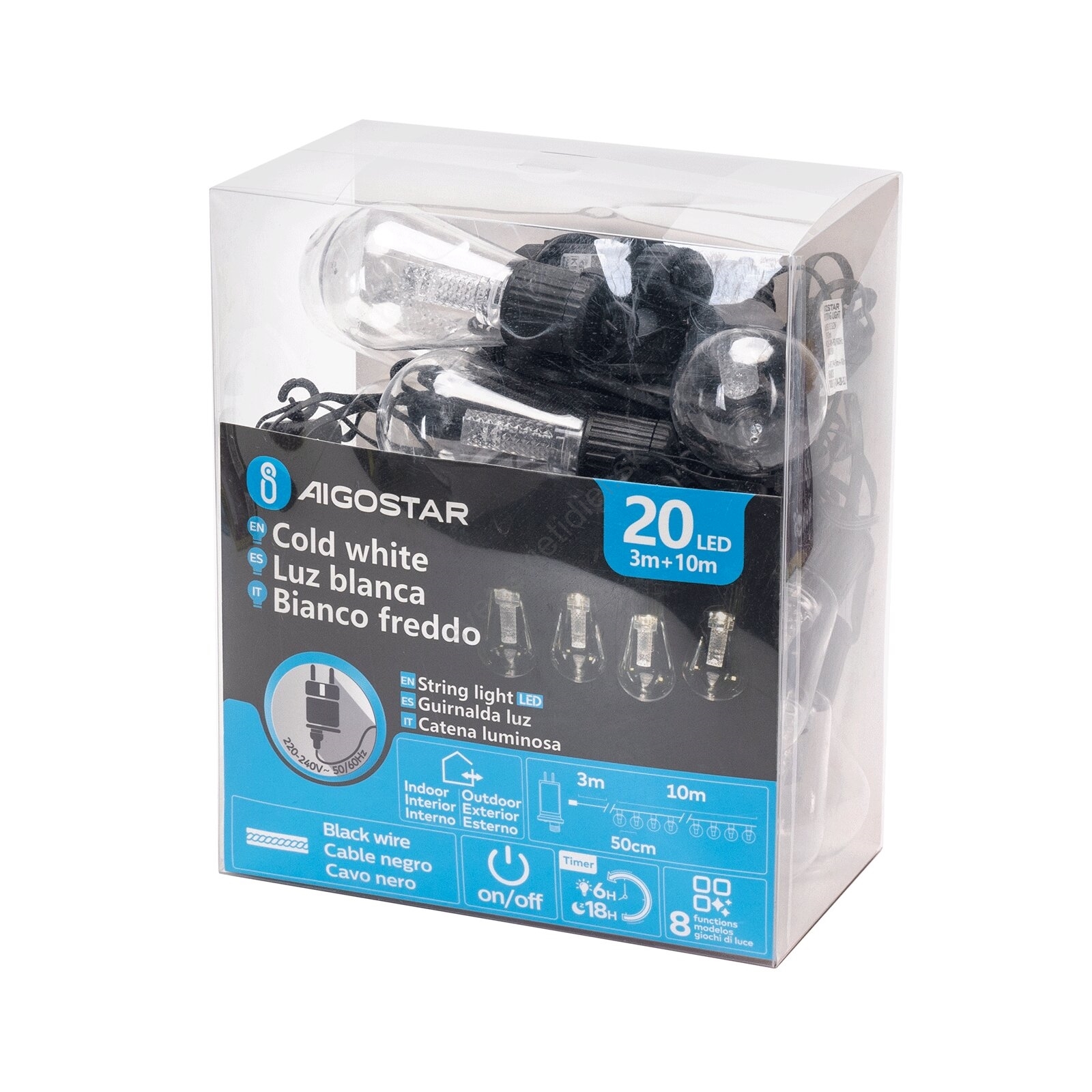 Aigostar - LED vonkajší dekoratívny svetelný reťazec 20xLED/13m IP44 studená biela