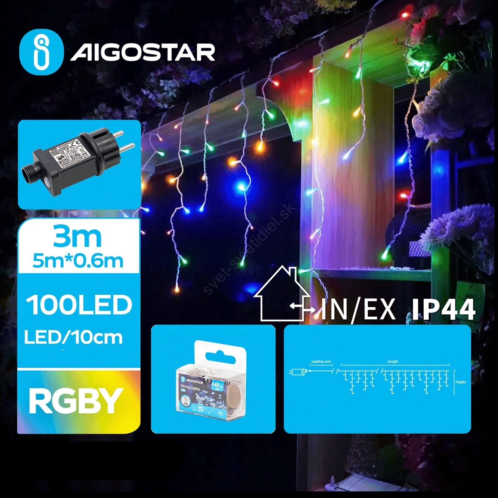 Aigostar - Vonkajší LED vianočný reťaz 100xLED/8 funkcií 8x0,6m IP44 viacfarebný