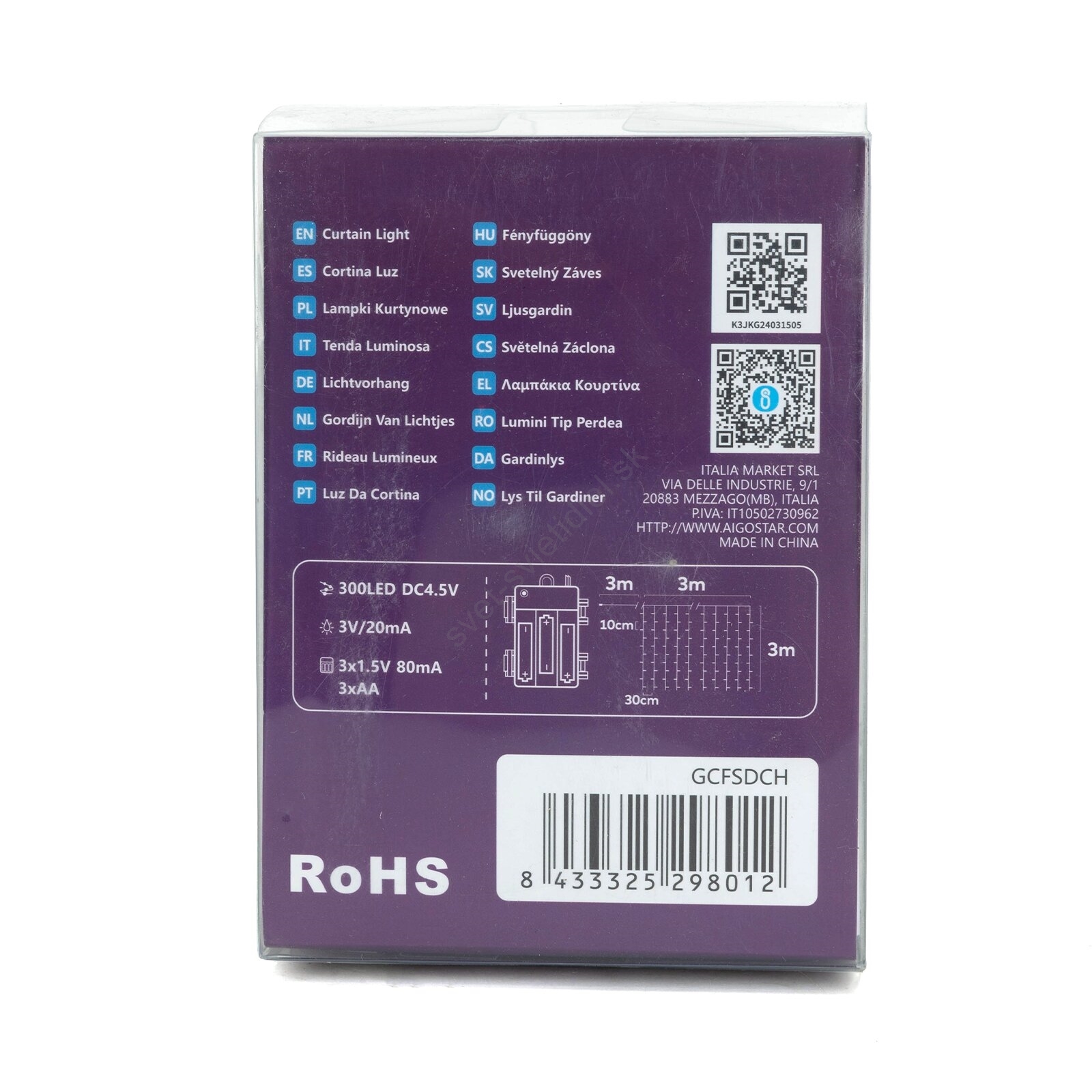 Aigostar-LED Vonkajšia vianočná reťaz 300xLED/8 funkcií 3xAA 6x2m IP44 studená biela