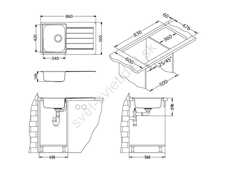 • Obsah balenia: nerezový drez, úchytky a tesnenie, sitkový ventil 3 1/2, sifón s odbočkou pre umývačku riadu.