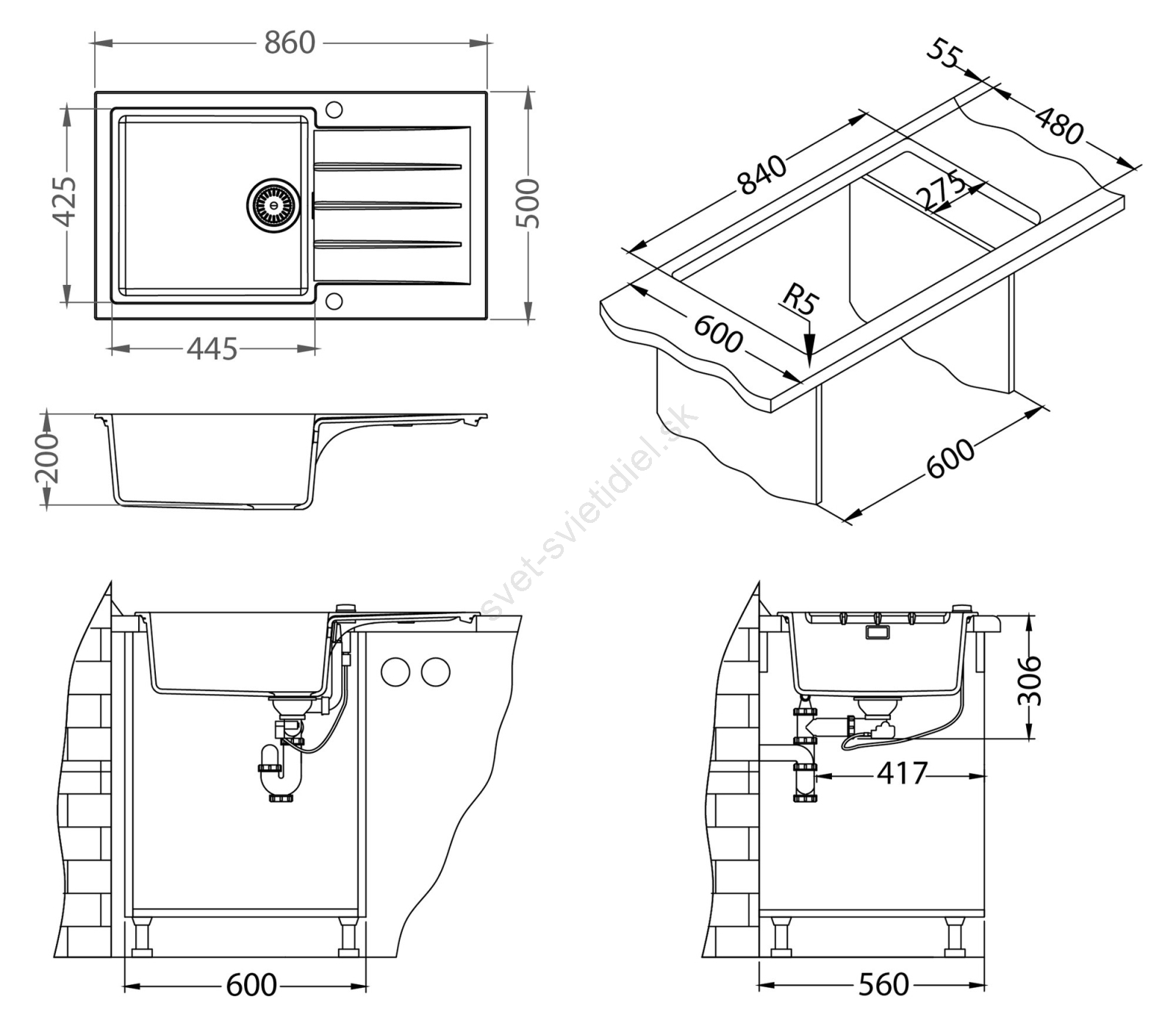 • ALVEUS SETA23236 - Kuchynský drez ROCK 59,5x47,5 cm + drezová batéria s flexibilným ramienkom MINTAS 34 cm granit/matná čierna