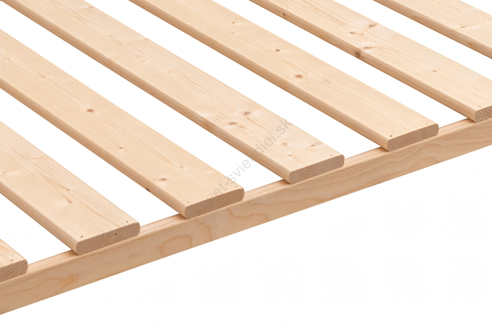 13 pevných latí je pripevnených sponami k bočnici, čo zabezpečuje robustnú konštrukciu roštu pre dlhodobé používanie.
