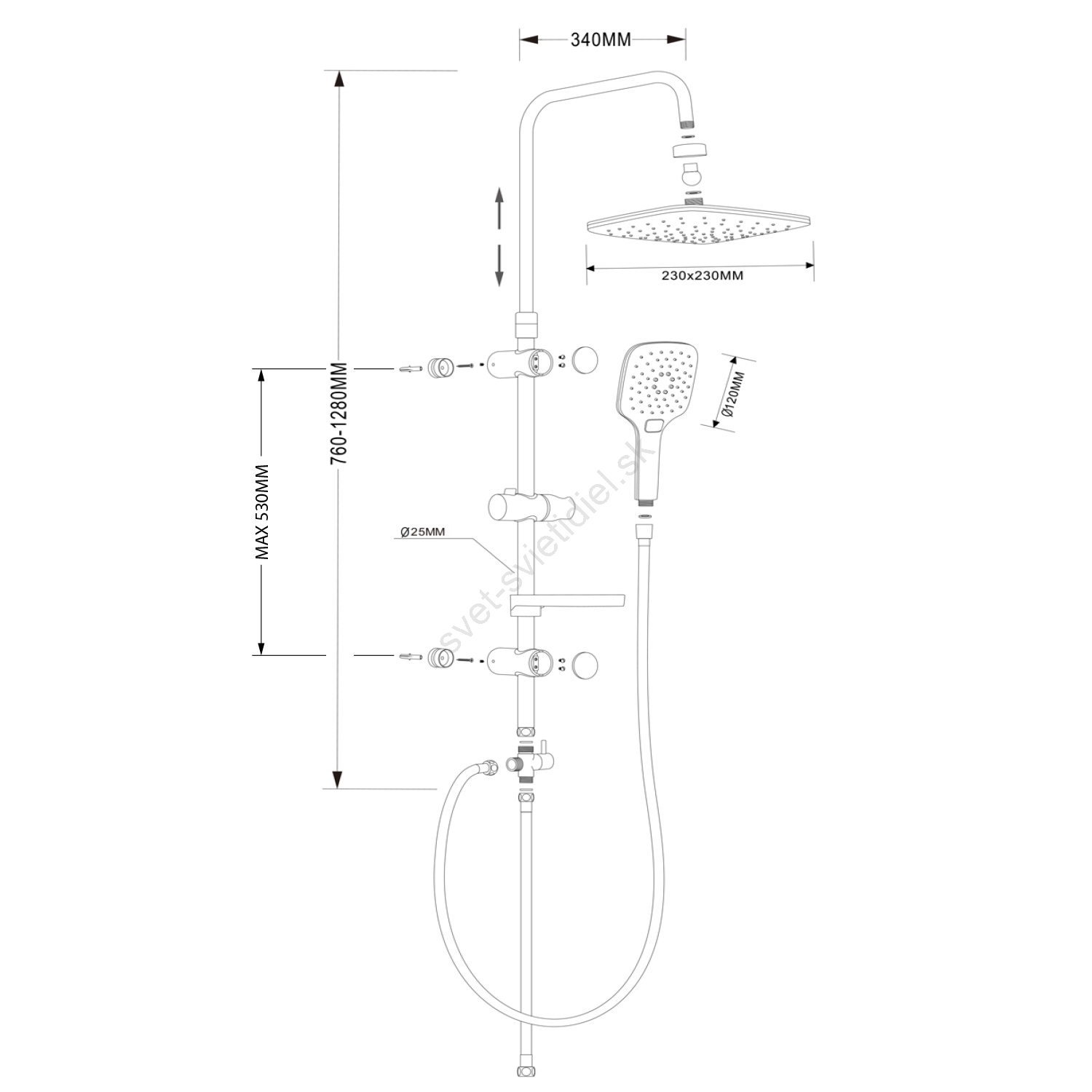 • Má nastaviteľnú výšku a funkciu dažďovej sprchy.