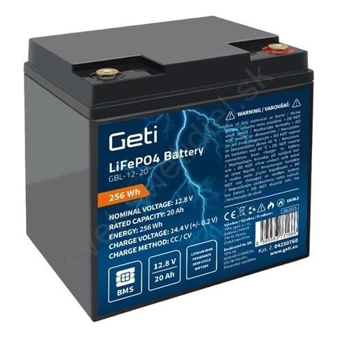 • Ponúka menovité napätie 12,8 V a kapacitu 20 Ah, čo zodpovedá celkovej energii 256 Wh.