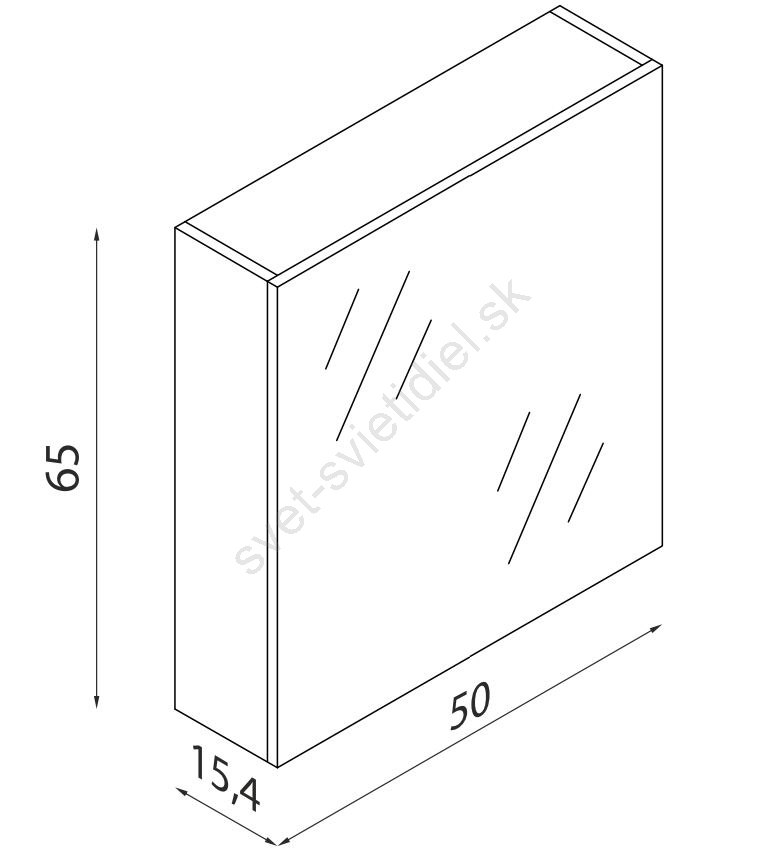 • Skrinka má zrkadlové dvierka s tlmeným dovieraním.