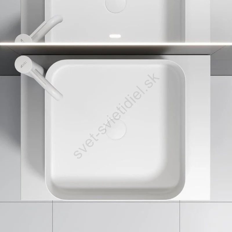 • Umývadlo je určené na inštaláciu na dosku, čo umožňuje flexibilné umiestnenie a kombináciu s rôznymi typmi kúpeľňových dosiek.