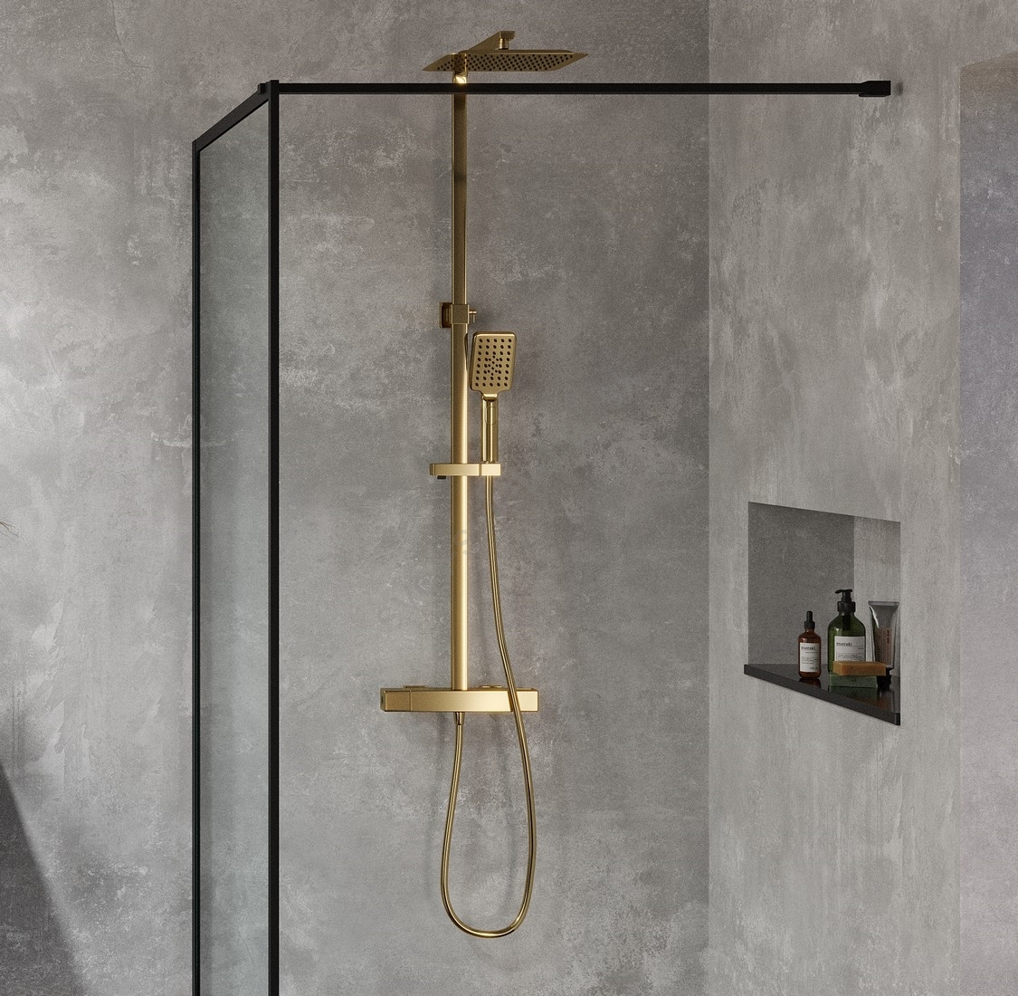 • Sprchová tyč a horná sprcha z nehrdzavejúcej ocele s povrchovou úpravou PVD.