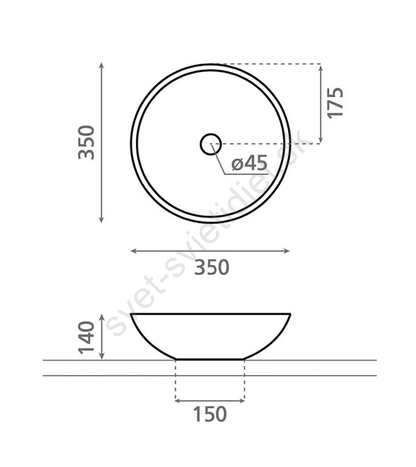 Bathco 4015 - Umyvadlo na dosku CASTELLON, priemer 35 cm, porcelán/biela