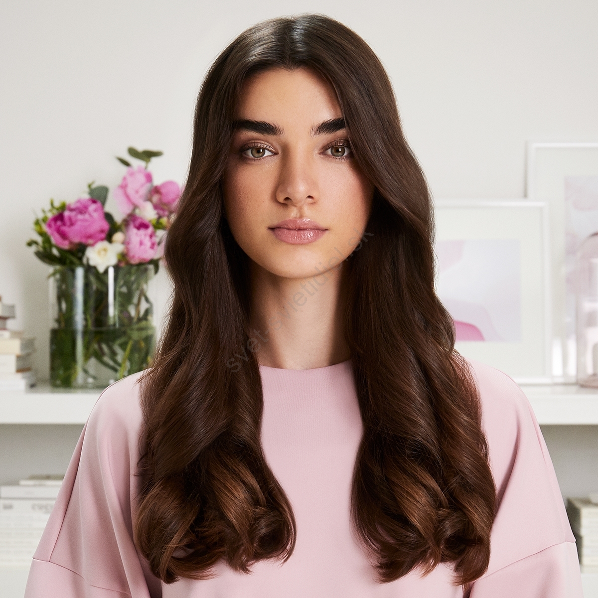 • Súčasťou balenia je 8 nástavcov: objemová kefa, kruhová kefa 32 mm, kruhová kefa 50 mm, kulma 19 mm, kefa na rozčesávanie, difuzér a koncentrátor.