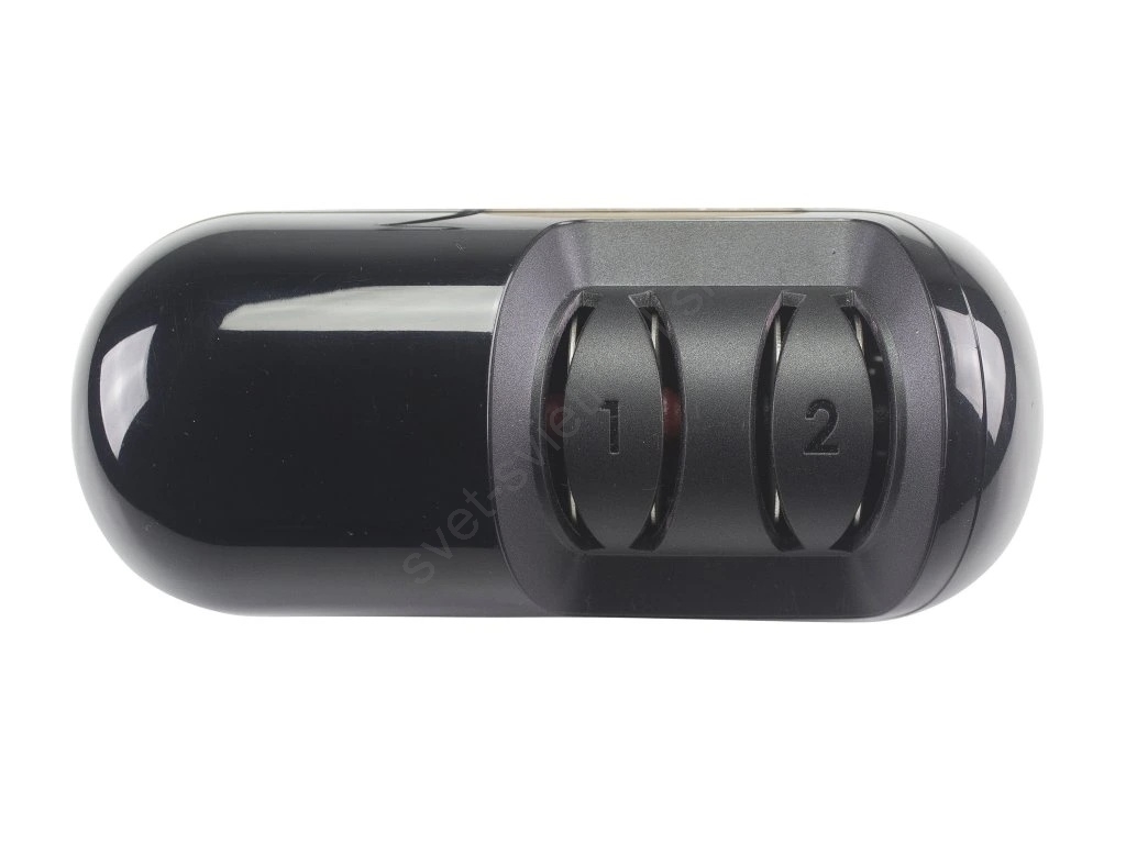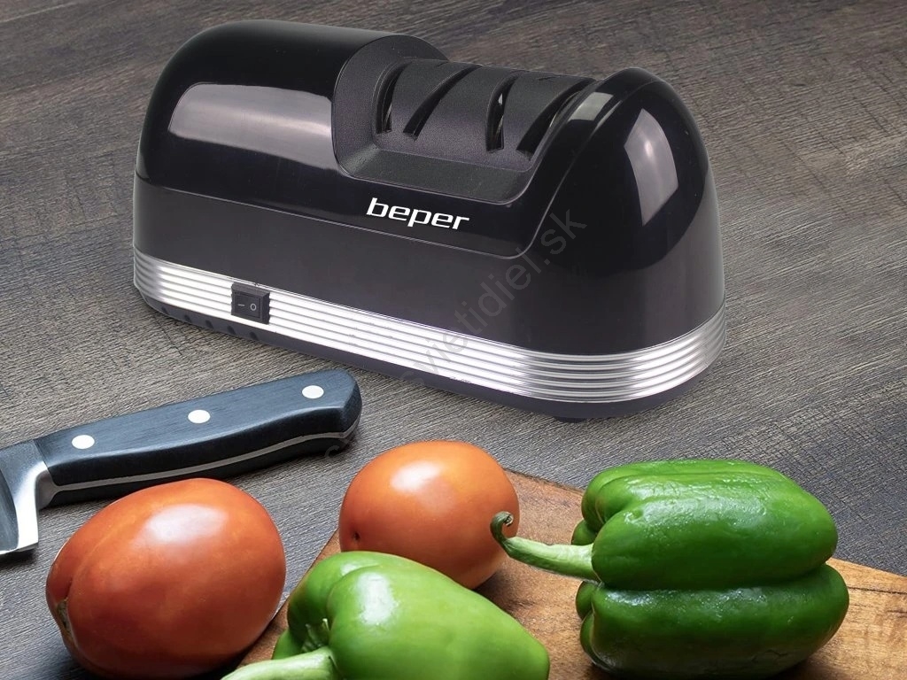• Elektrický dvojkomorový brúsik na nože je dodávaný v elegantnom čiernom dizajne.