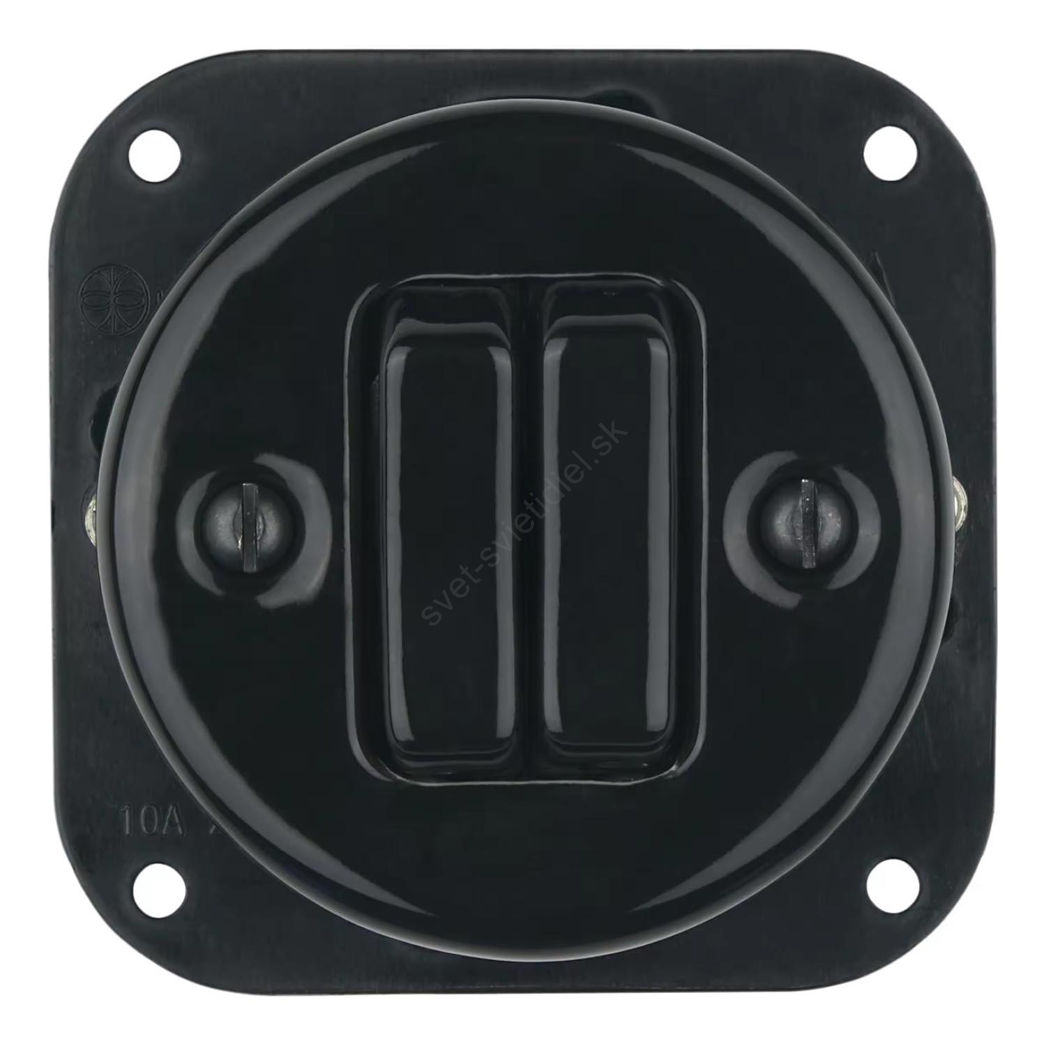 Bohemia-Design - Porcelánový retro dvojitý vypínač bez rámčeka č. 6+6 čierny