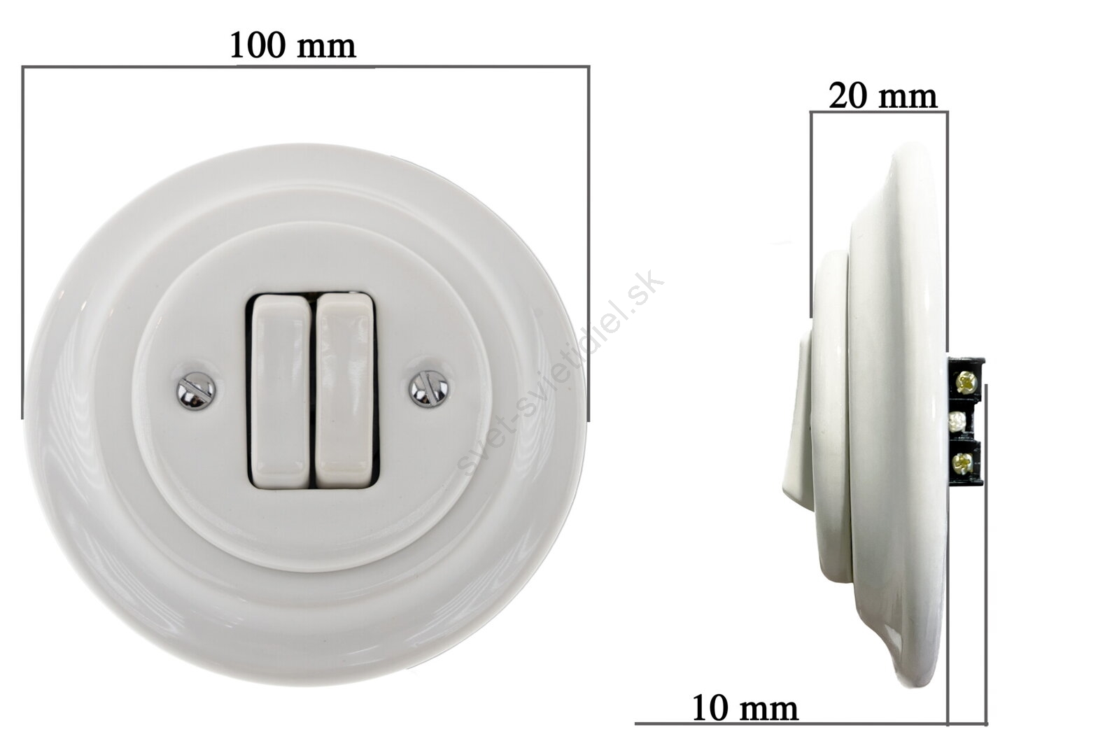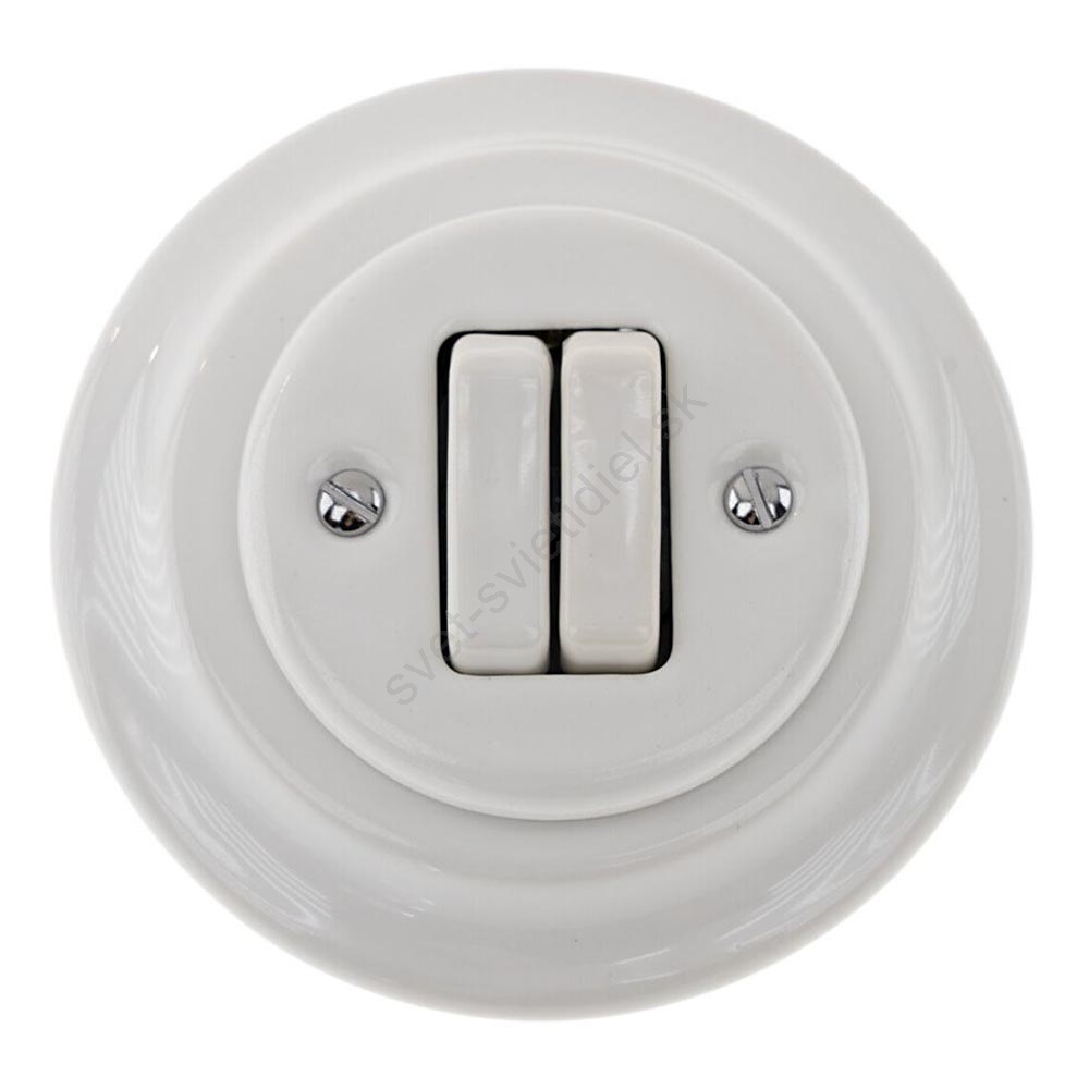Bohemia-Design - Retro porcelánový dvojitý vypínač s rámikom č. 6+6 biela