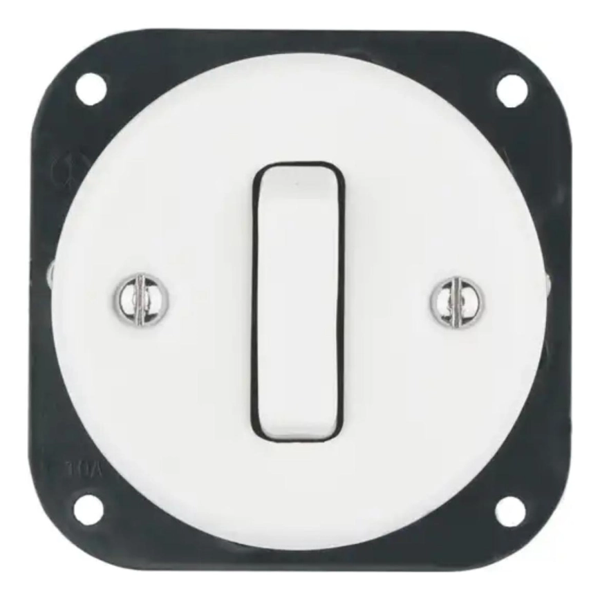 Bohemia-Design - Porcelánový retro jednoduchý vypínač bez rámčeka č. 1 biely