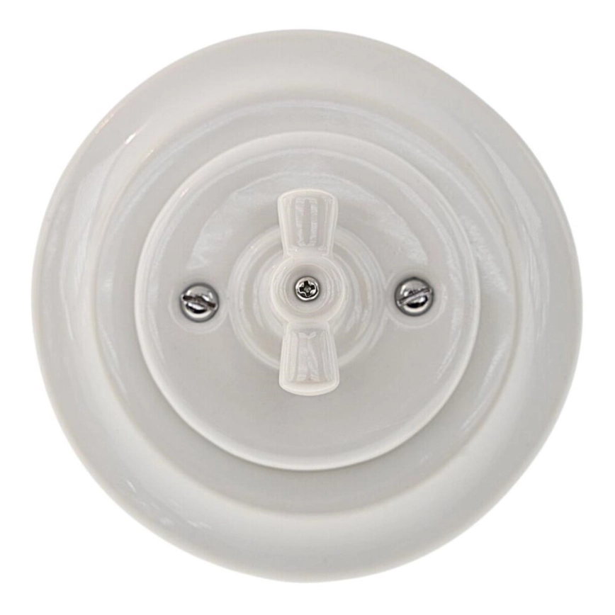 Bohemia-Design - Porcelánový retro otočný vypínač s rámikom č. 1 biela