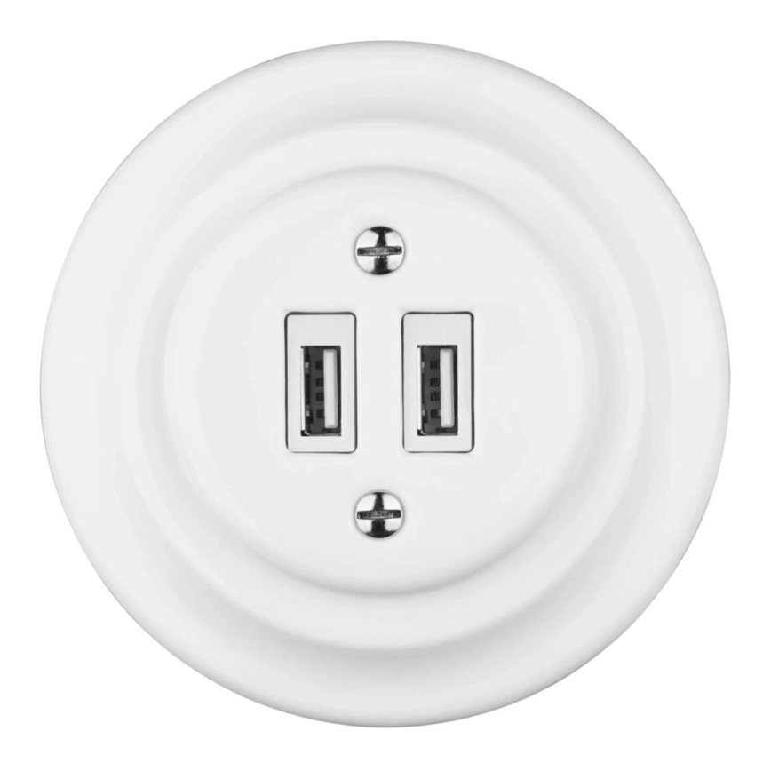 Bohemia-Design - Porcelánová retro USB napájacia zásuvka s rámikom 2x USB-A biela