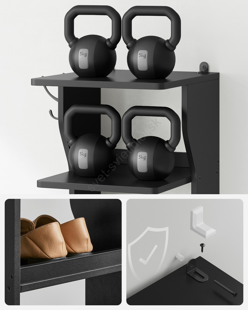 • Každá polica tohto botníka unese až 10 kg a súprava proti prevráteniu zvyšuje jeho stabilitu.