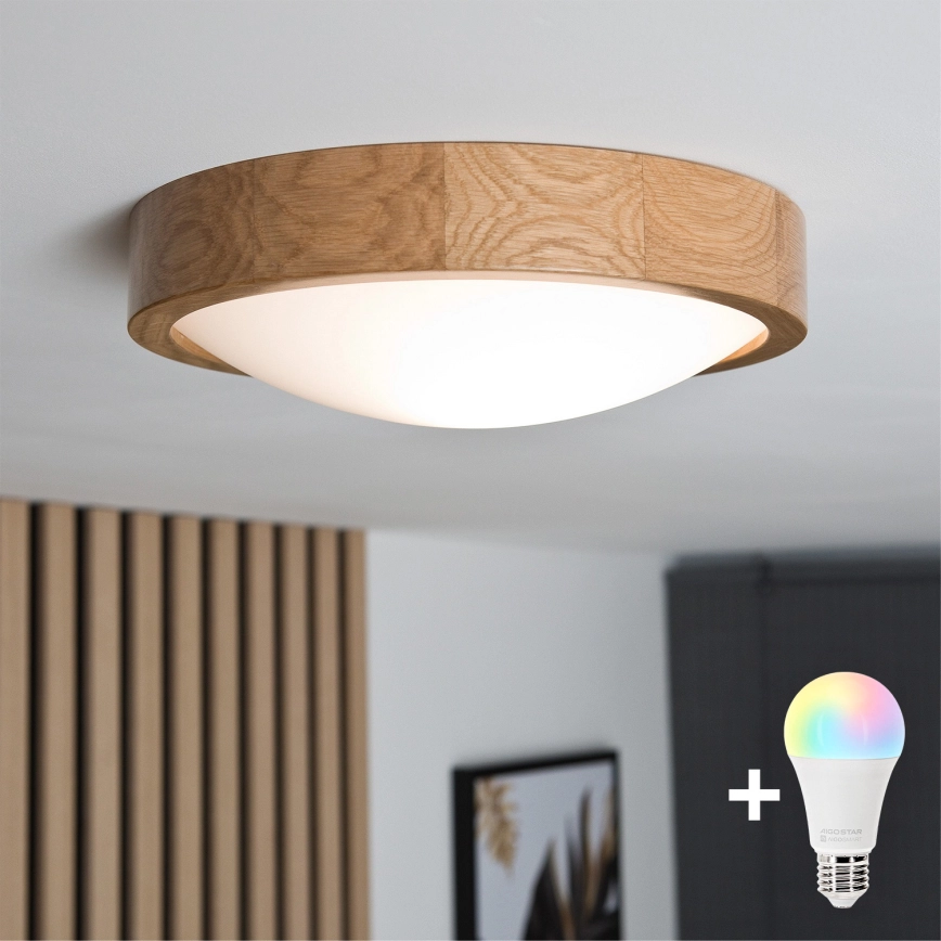 Brilagi - LED RGBW stmievateľné stropné svietidlo CARVALHO SLIM 1×E27/15 W/230 V 2700–6500 K Wi‑Fi dub, priemer 27 cm