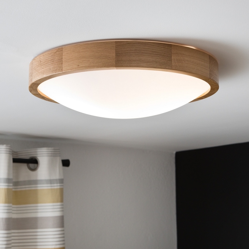Brilagi - LED RGBW stmievateľné stropné svietidlo CARVALHO SLIM 2xE27/15W/230V 2700-6500K Wi-Fi dub priemer 37 cm