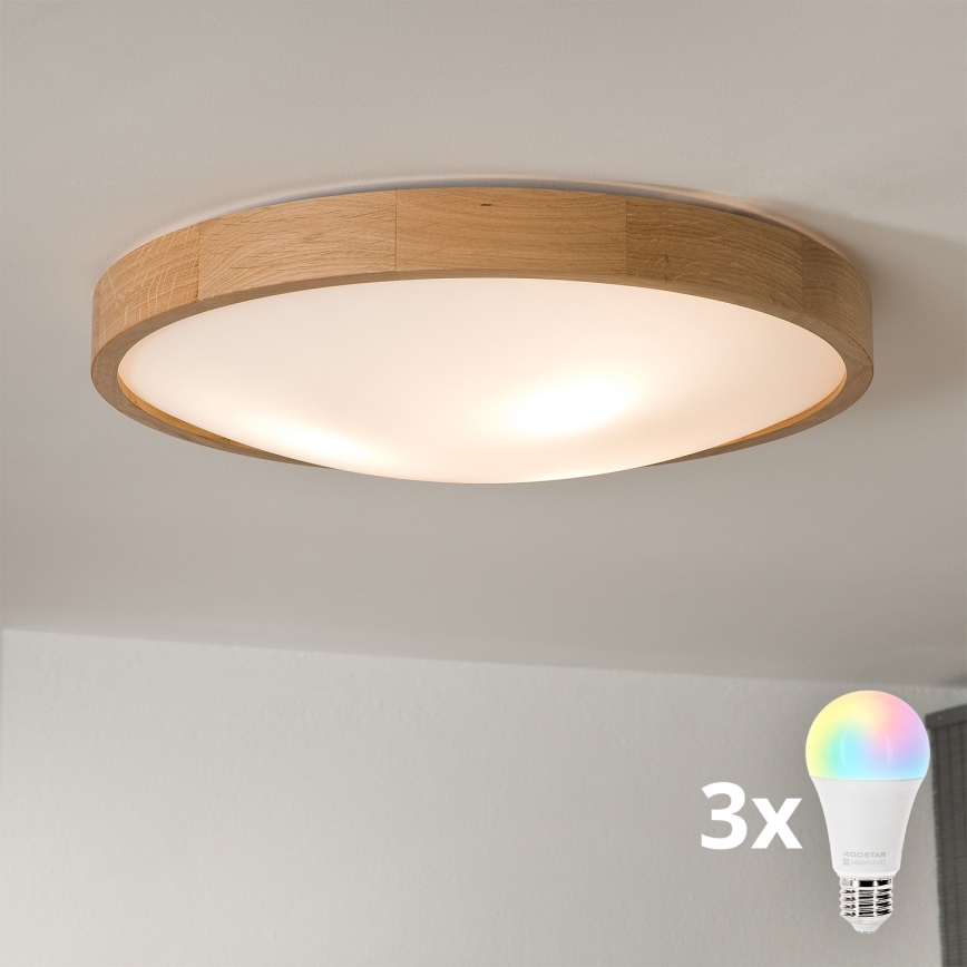 Brilagi - LED RGBW stmievateľné stropné svietidlo CARVALHO SLIM 3xE27/15W/230V 2700-6500K Wi-Fi dub priemer 47 cm