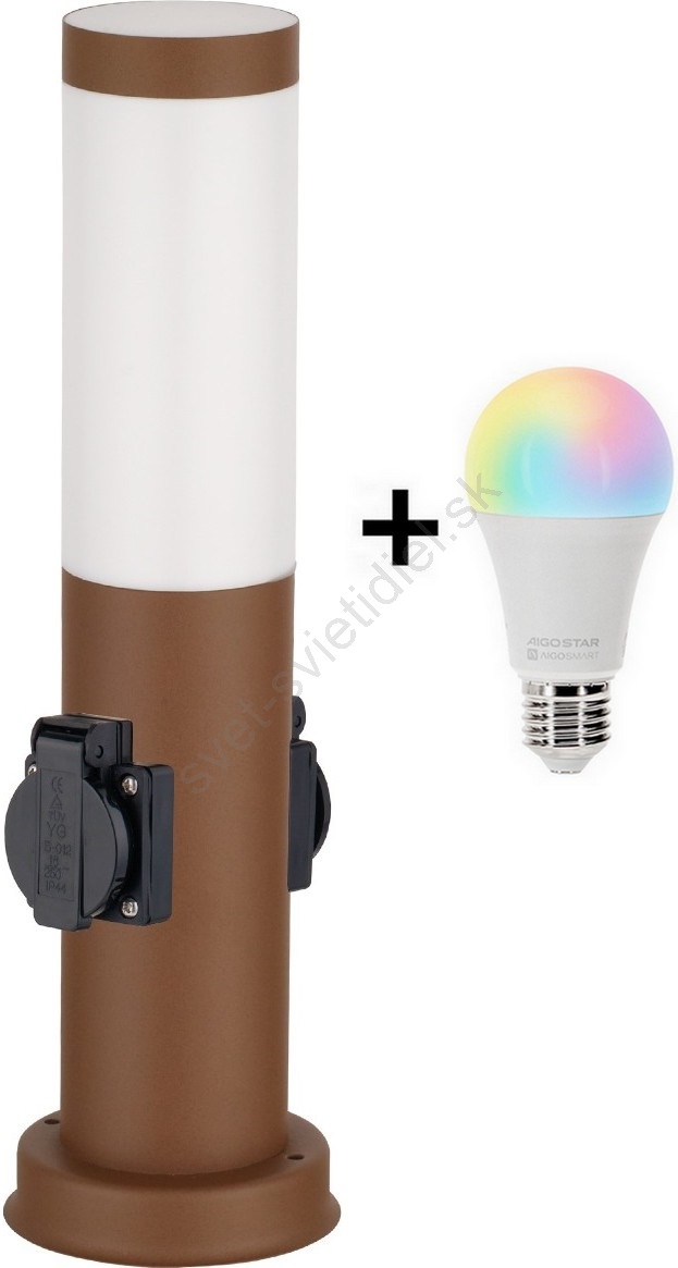 • Brilagi - LED RGBW stmievateľná vonkajšia lampa s 2 zásuvkami 1xE27/15W/230V 2700-6500K IP44 40 cm hnedá
