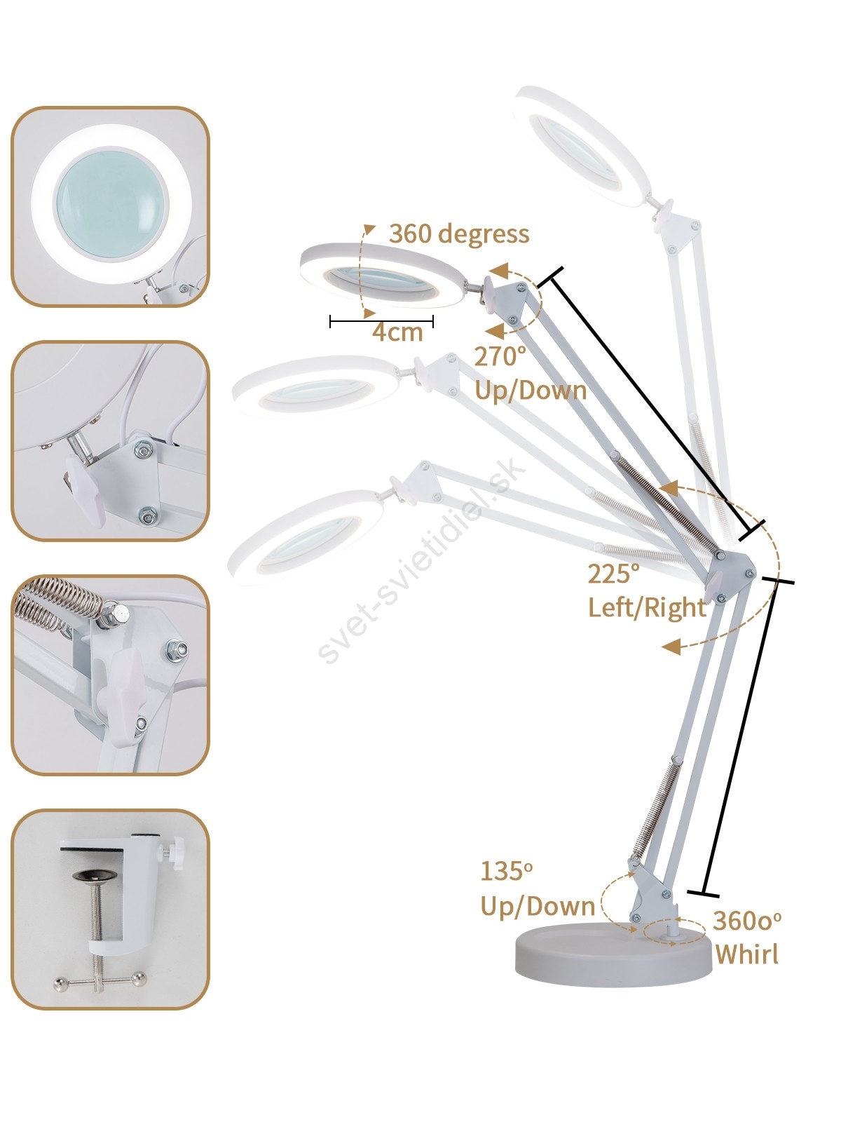 • Brilagi - LED Stmievateľná stolná lampa s lupou LENS LED/12W/5V 3000/4200/6000K biela