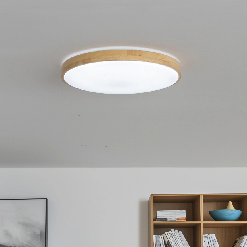 • LED Stmievateľné stropné svietidlo LENA LED/24W/230V 3000-6500K dub + diaľkové ovládanie