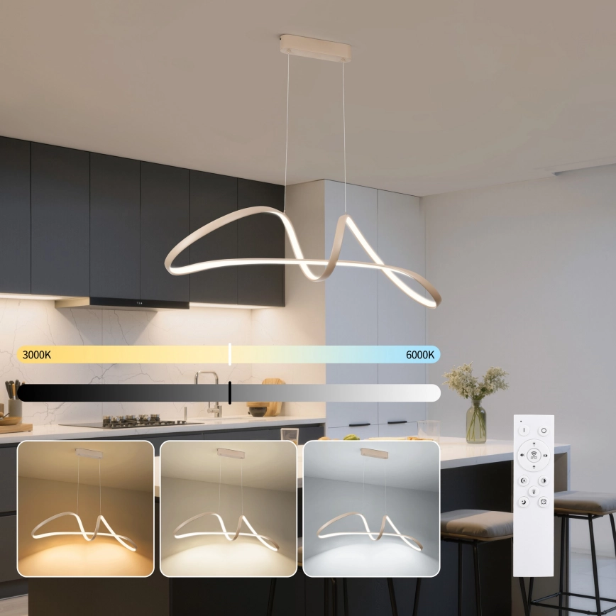 • Brilagi - LED stmievateľný luster na lanku TWISTER LED/60W/230V 3000-6000K béžová + diaľkové ovládanie