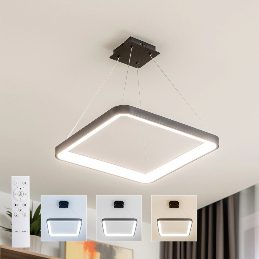 • Brilagi - LED stmievateľný závesný luster FALCON SLIM LED/50W/230V 3000-6500K 50x50 cm čierny + diaľkové ovládanie