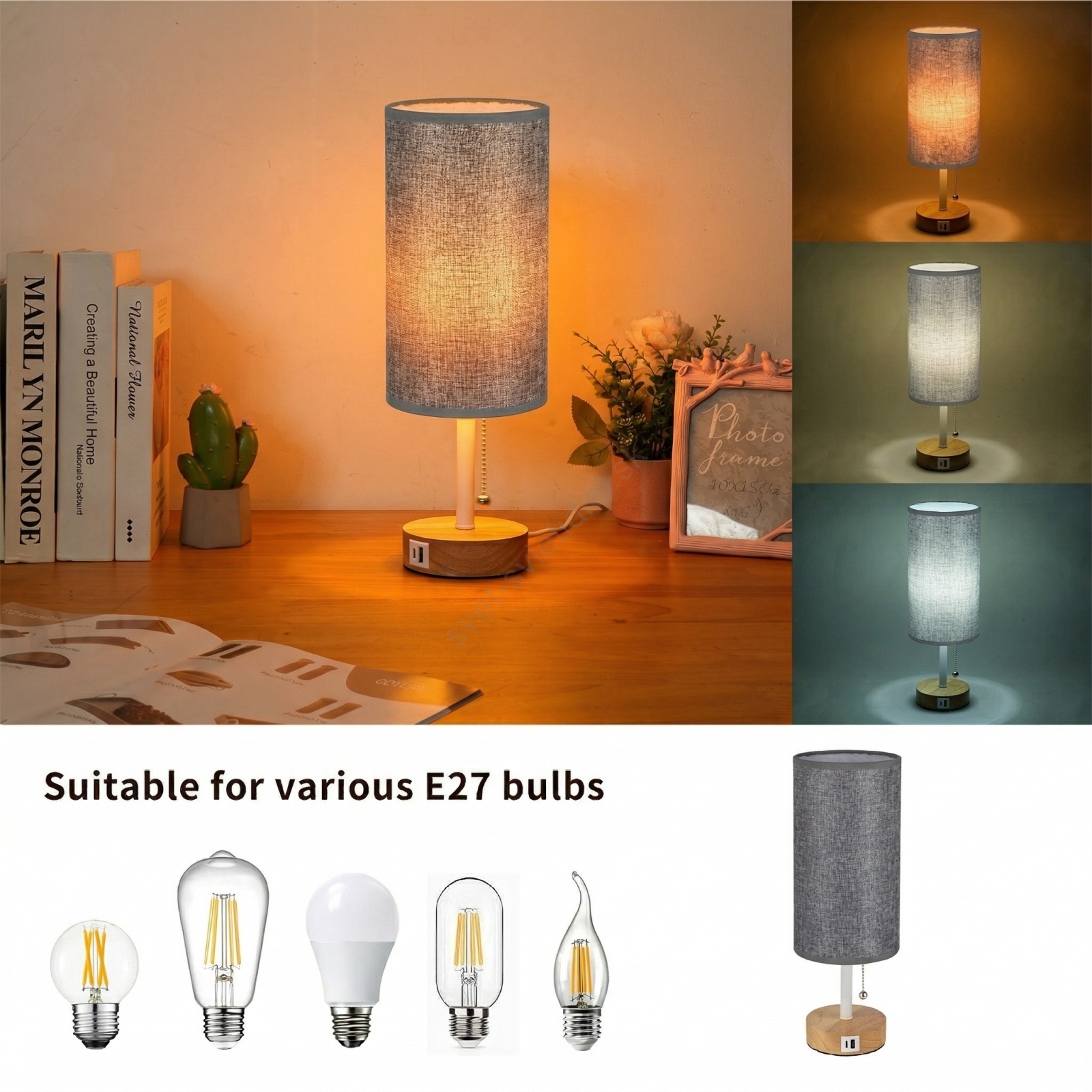Brilagi - Stolná lampa s USB portom TABLON 1xE27/25W/230V dub/biela/šedá charakterizuje pekný dizajn a funkčné prevedenie.  Do svietidla je určená žiarovka s päticou E27. Tu si môžete kúpiť ďalšie žiarovky za výhodnú cenu. Získate tak zaujímavý doplnok do svojho domova.