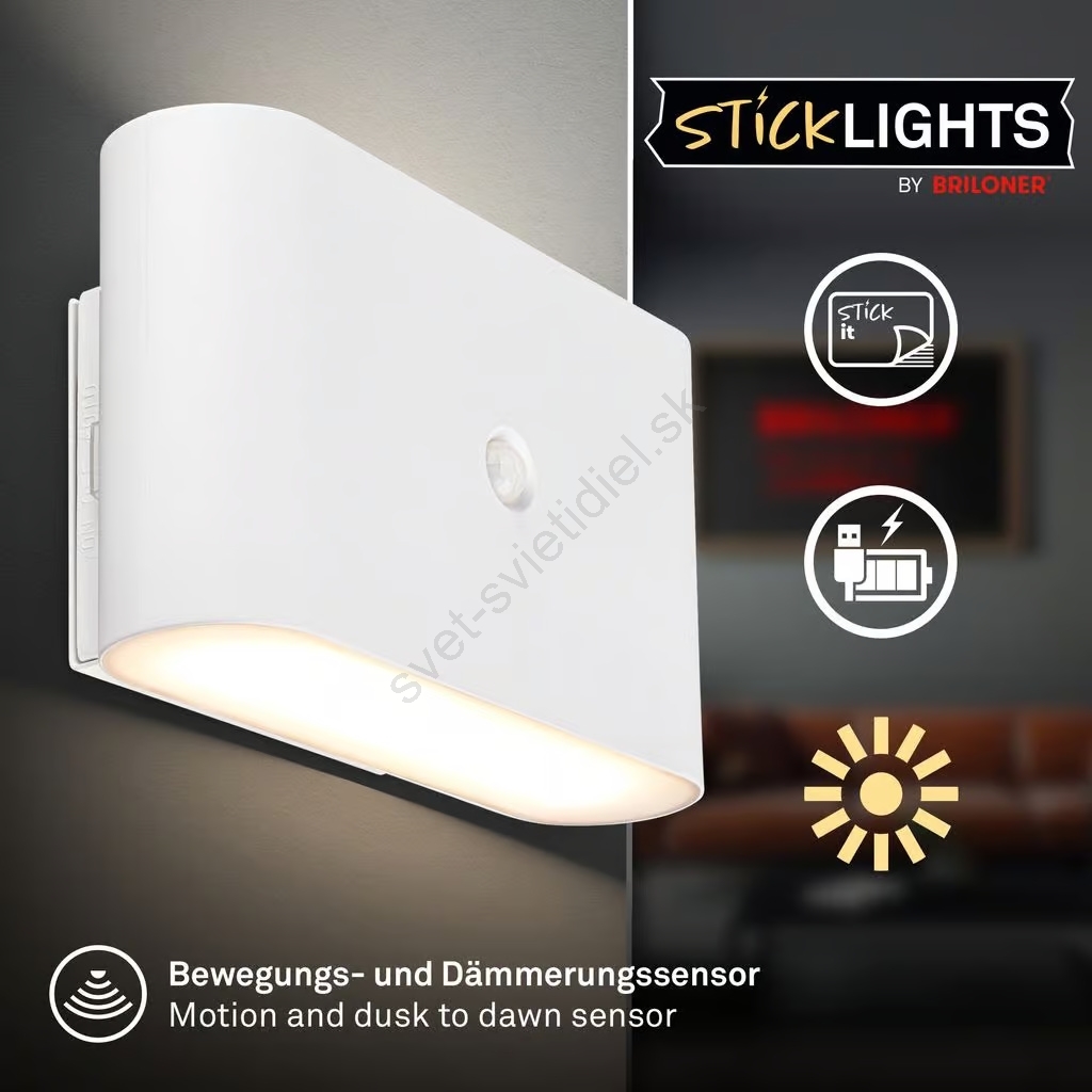 • Briloner 3878016 - LED Nabíjateľné nástenné svietidlo s pohybovým a súmrakovým senzorom CHAT LED/3W/5V 2000 mAh biela