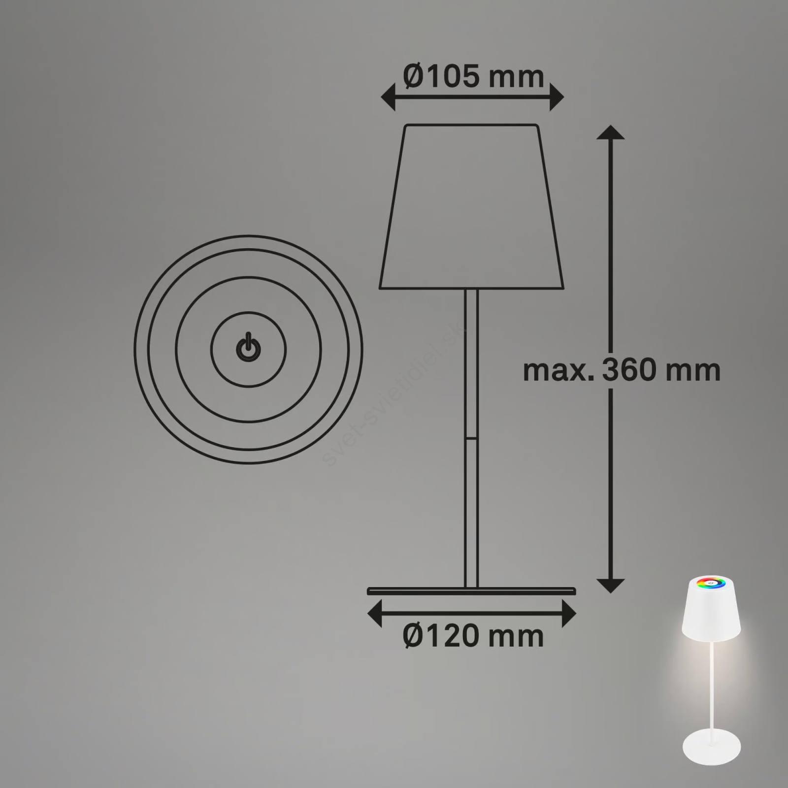 • Briloner 7517016 - LED RGBW Stmievateľná nabíjateľná vonkajšia stolová lampa CILANO LED/3W/5V IP44 2000 mAh biela