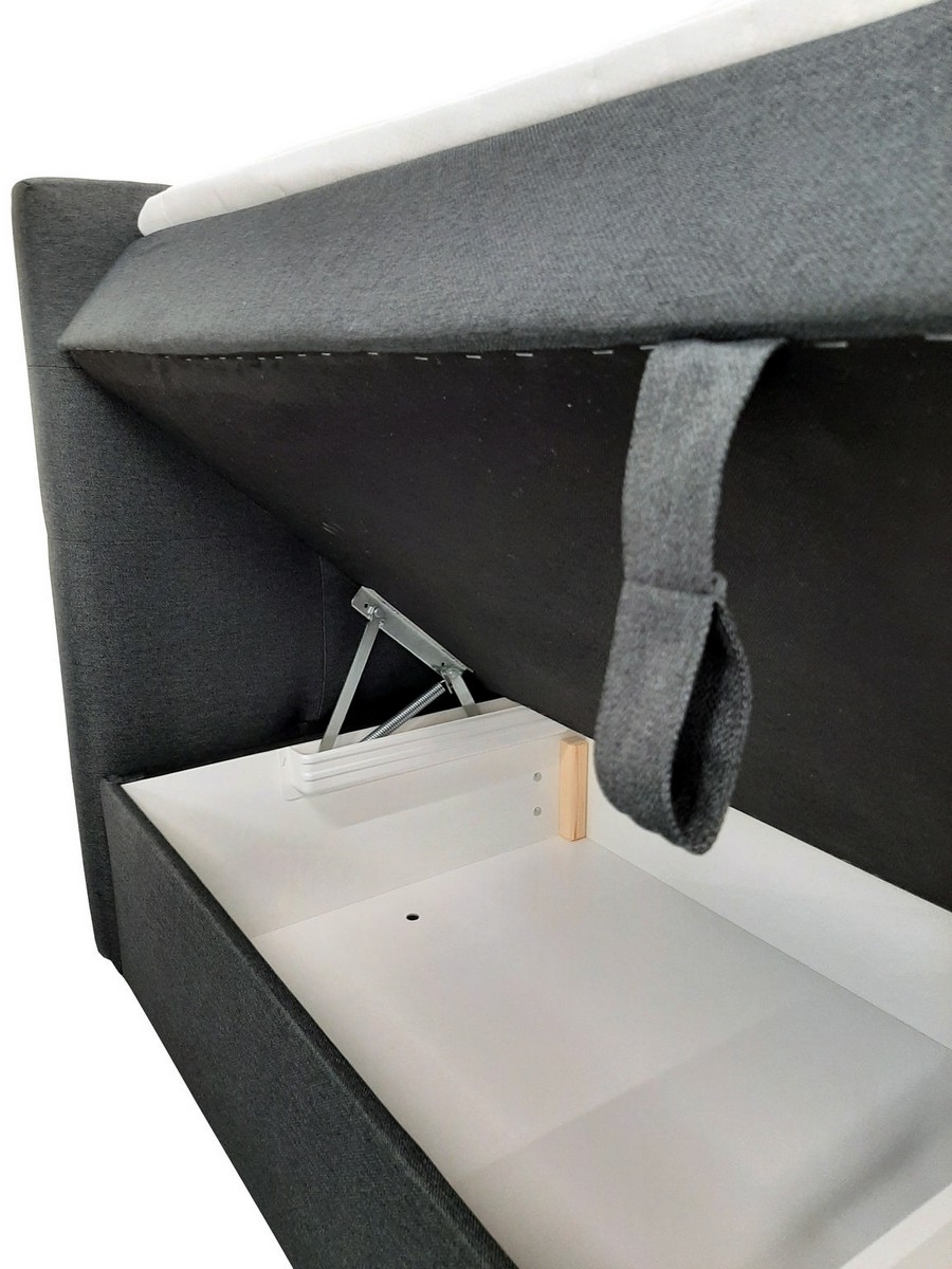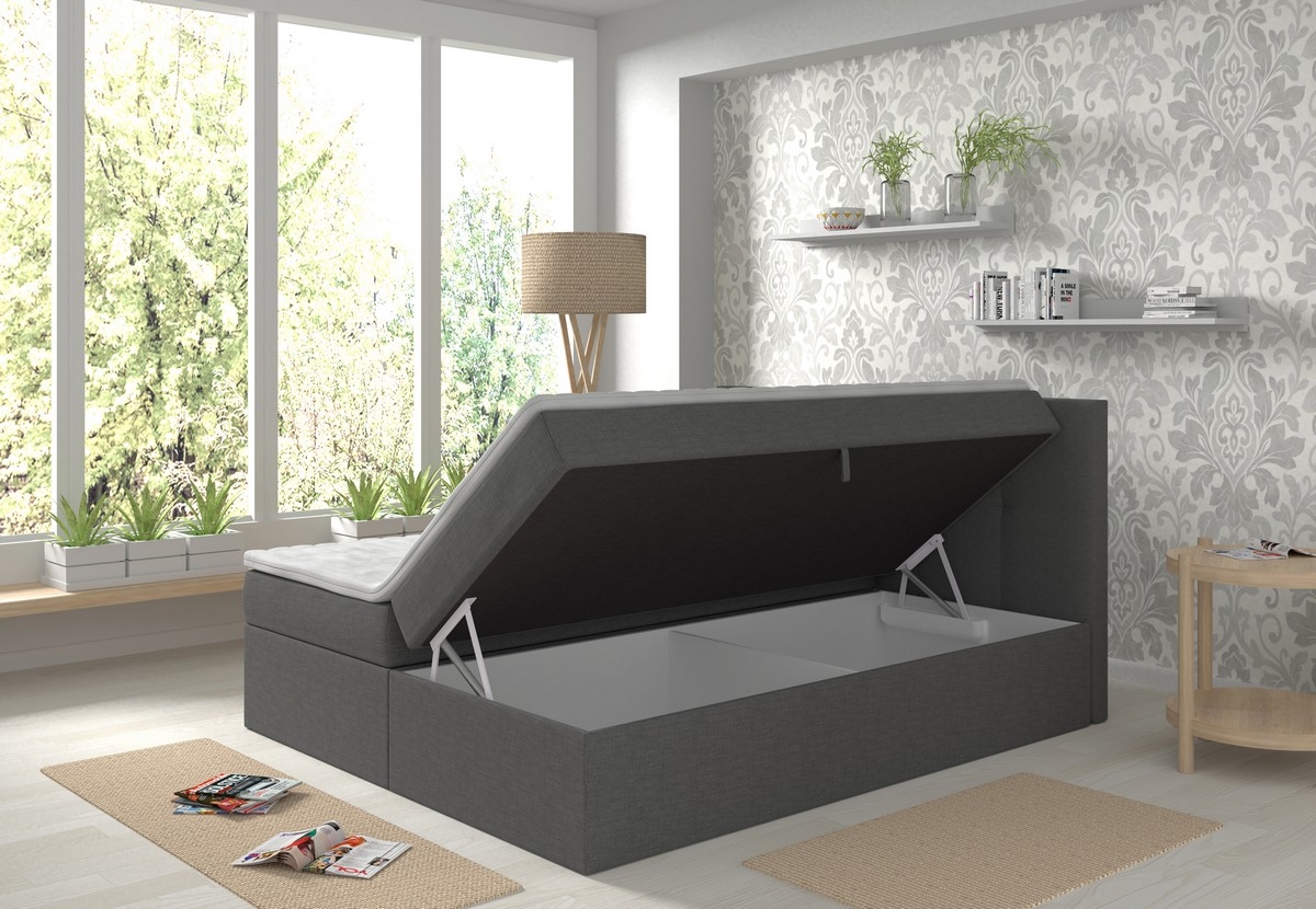 • Čalúnená posteľ EMBER 180x200 cm s matracmi, topperom a úložným priestorom v antracitovej farbe