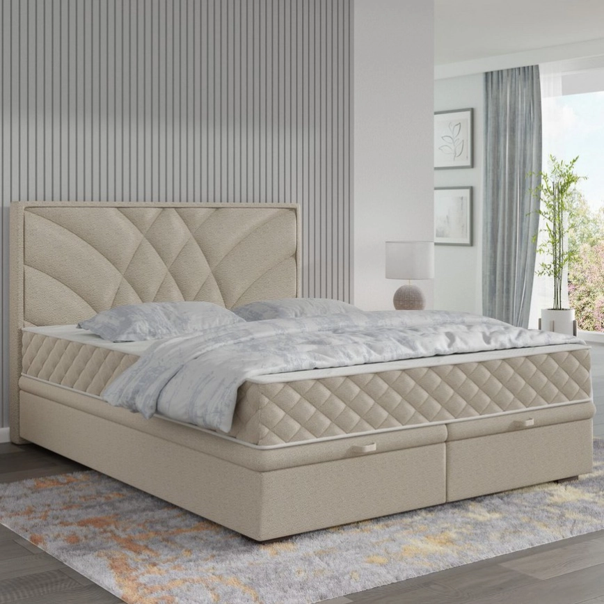 Čalúnená posteľ GINA 160x200 cm s matracmi a úložným priestorom, béžová