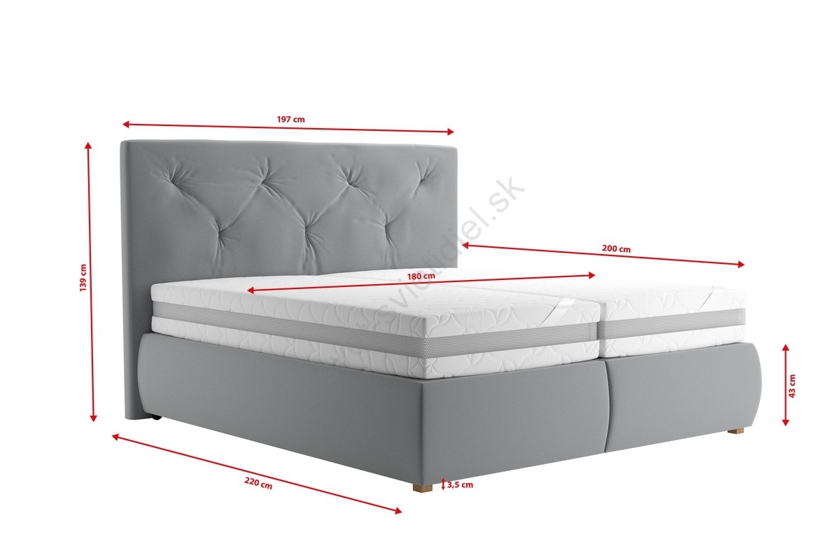 Boxspringová posteľ ELEN 180 x 200 cm s matracom a topperom, sivá