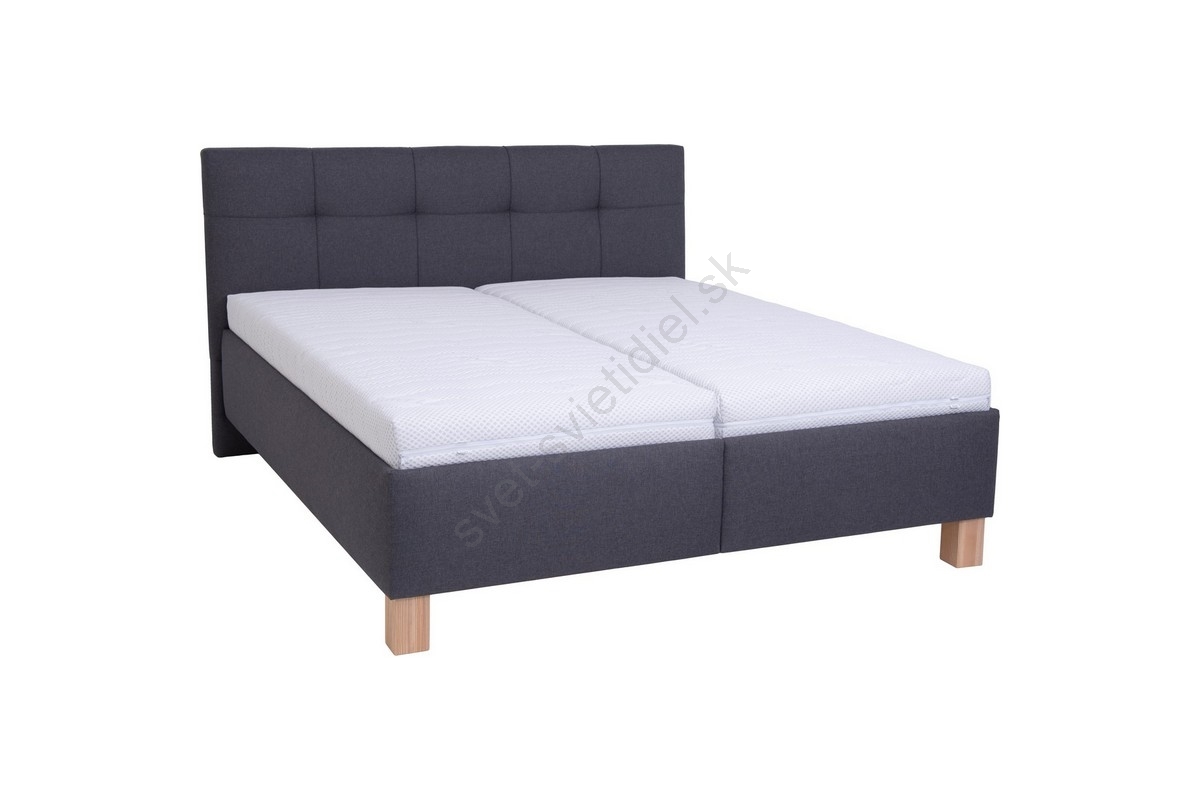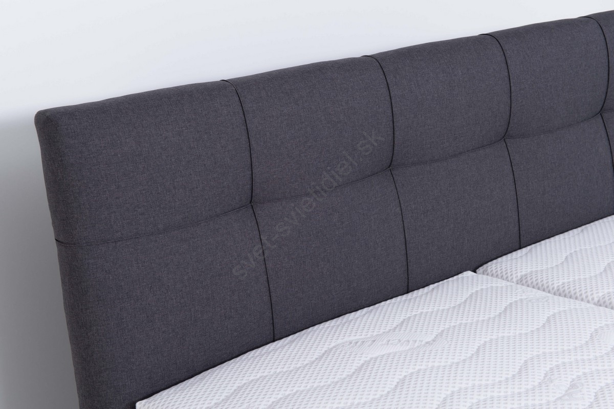 • Čalúnená dvojlôžková posteľ s voľne uloženými matracmi sa pýši detailne prepracovaným, elegantne prešitým čelom.