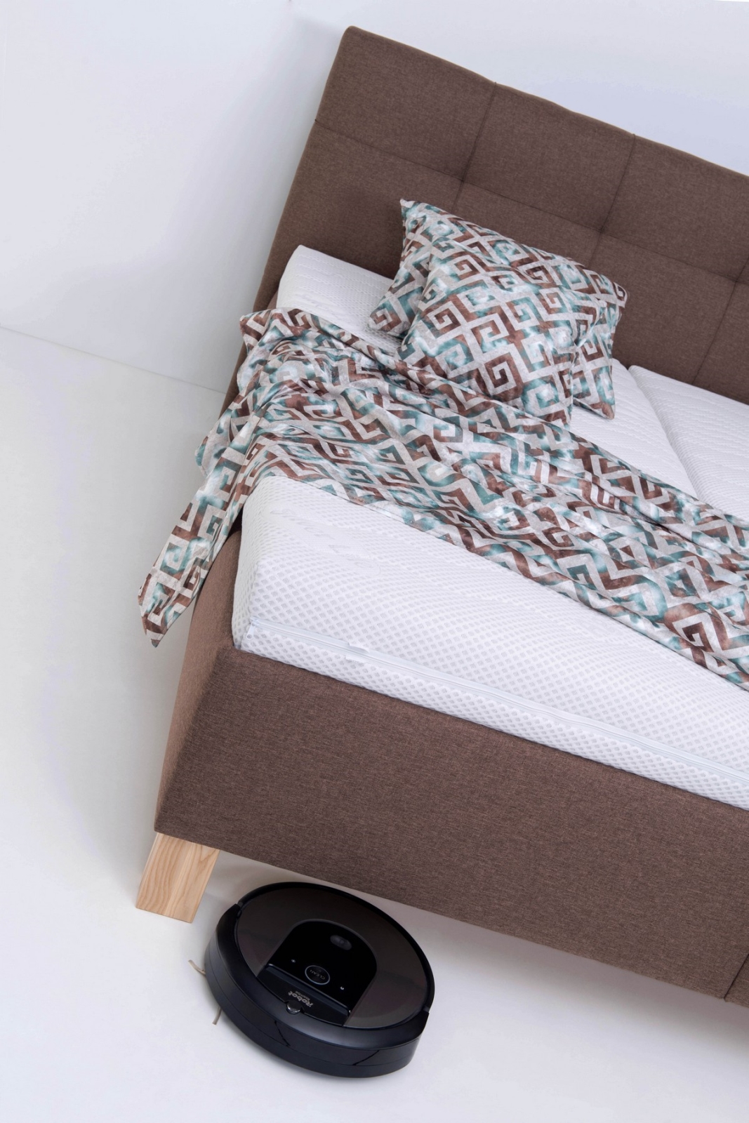 • Čalúnená dvojlôžková posteľ s voľne uloženými matracmi sa pýši detailne prepracovaným, elegantne prešitým čelom.