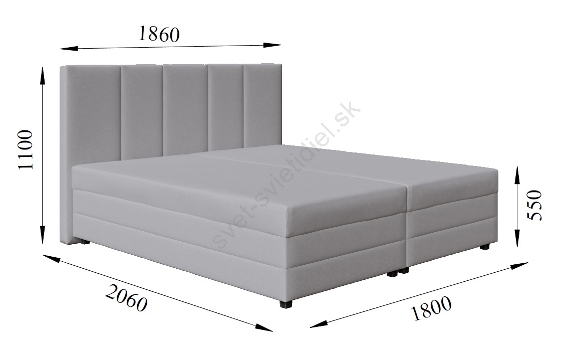 • Rozmer ložnej plochy: 180 x 200 cm.