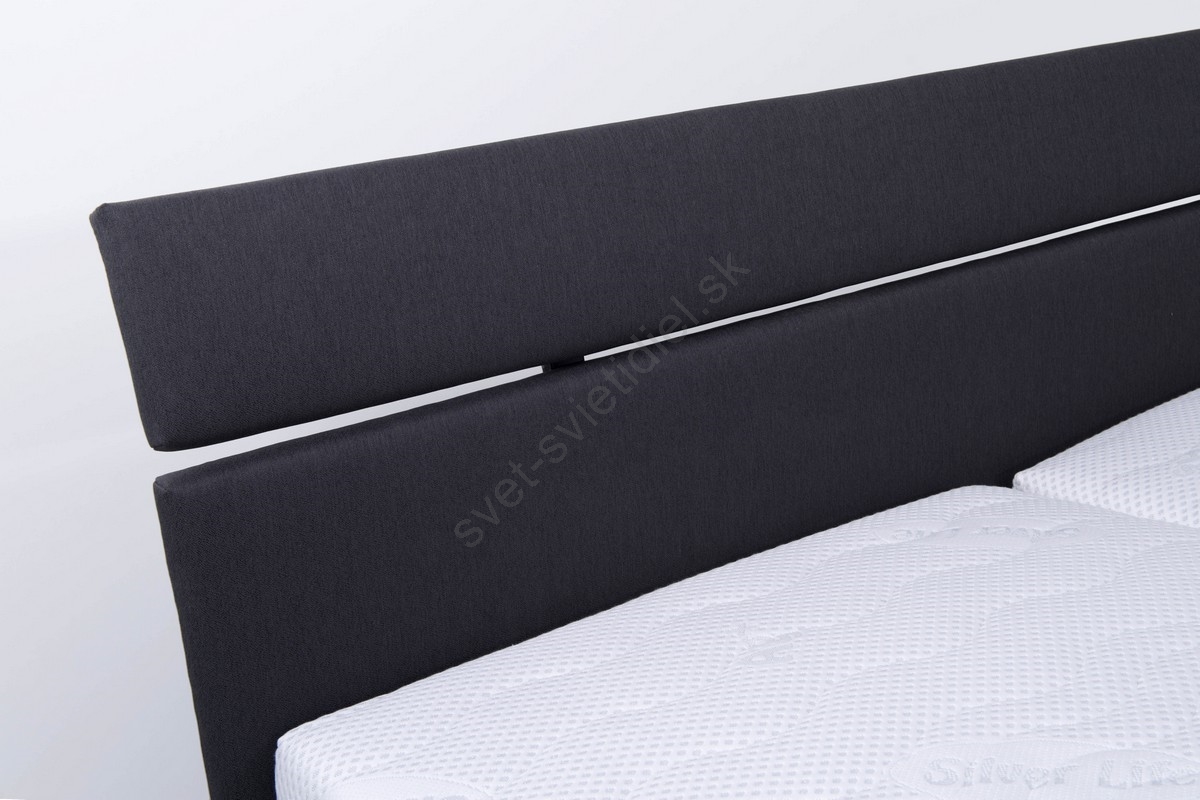 • Komfortné delené čelo postele - čalúnené príjemnou látkou s PUR penou pre mäkkosť a pohodlie, ideálne napríklad pri čítaní.