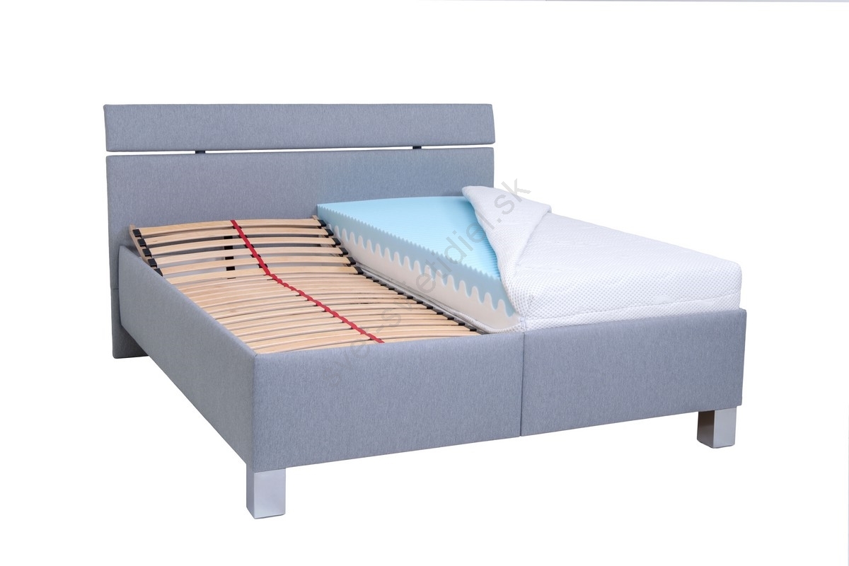 • Komfortné delené čelo postele - čalúnené príjemnou látkou s PUR penou pre mäkkosť a pohodlie, ideálne napríklad pri čítaní.
